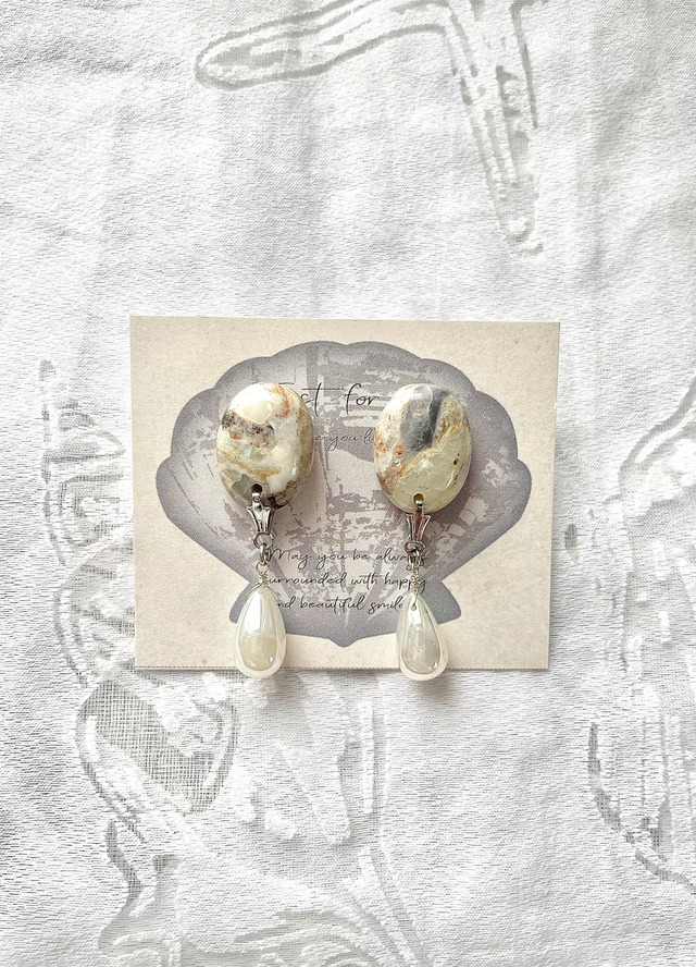 天然石カルセドニーとお花のピアス