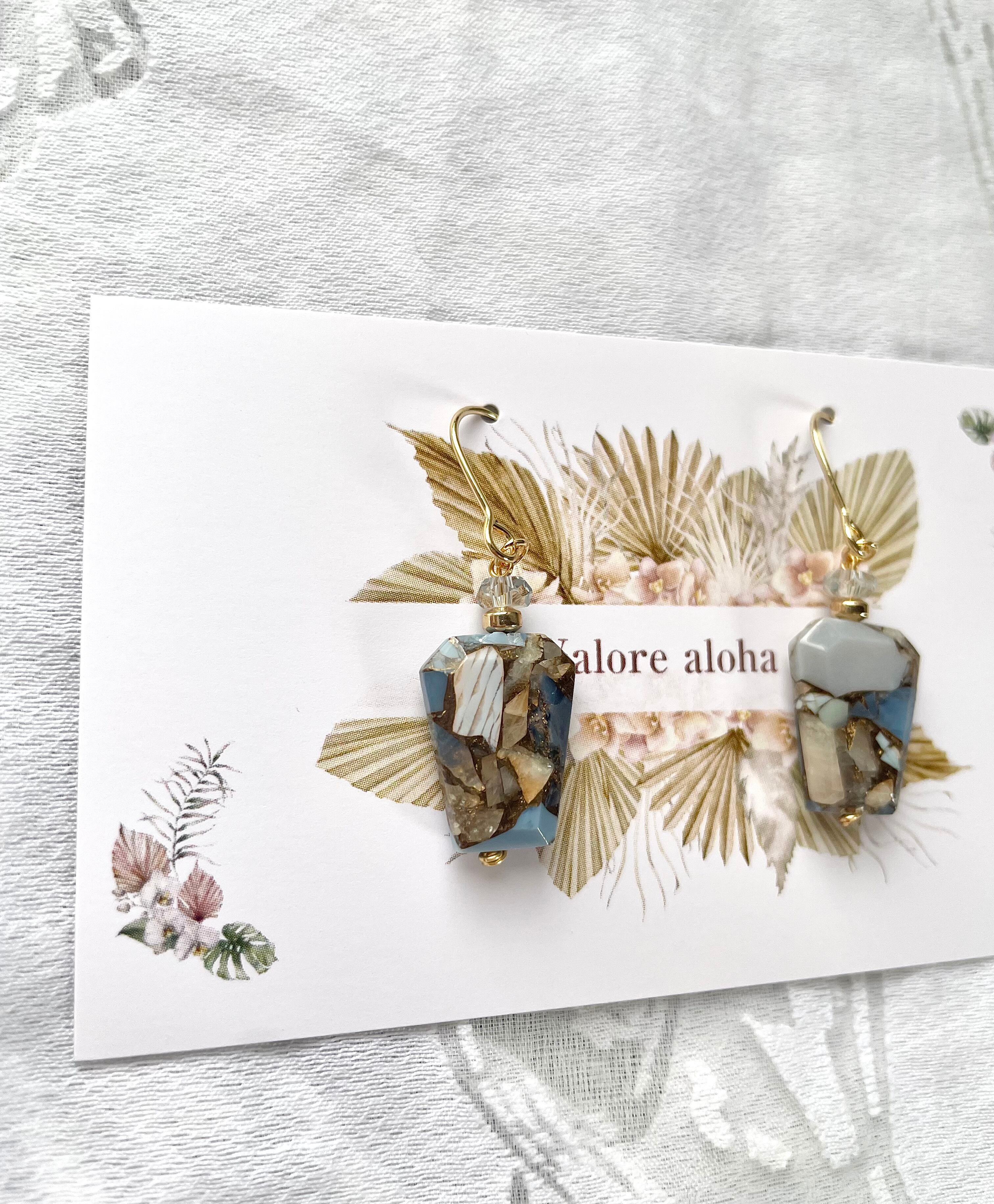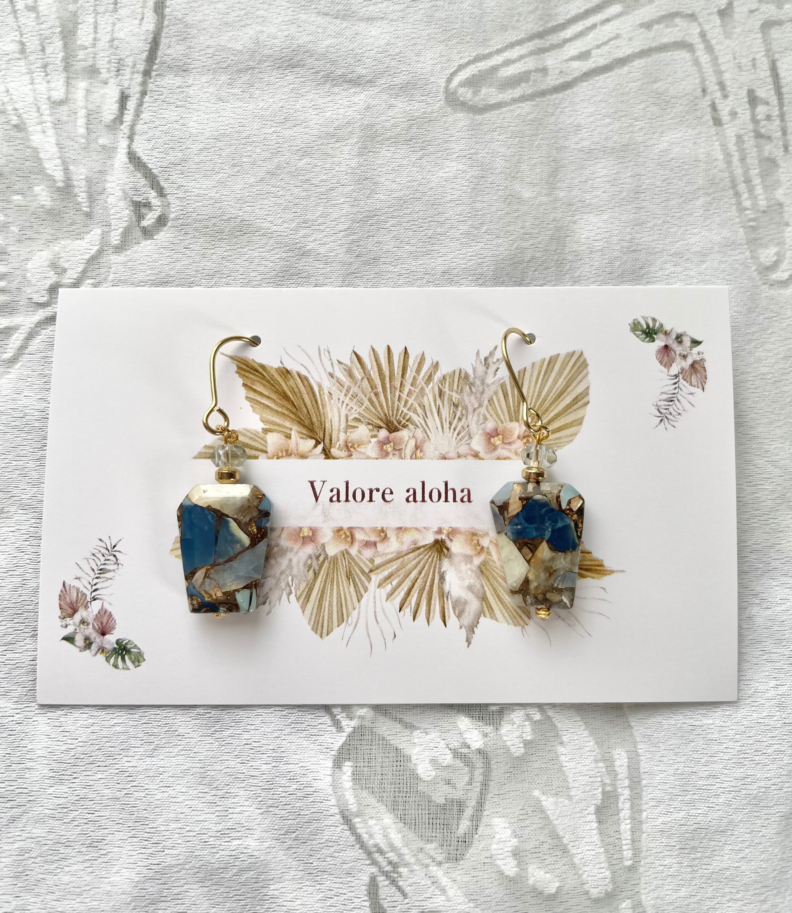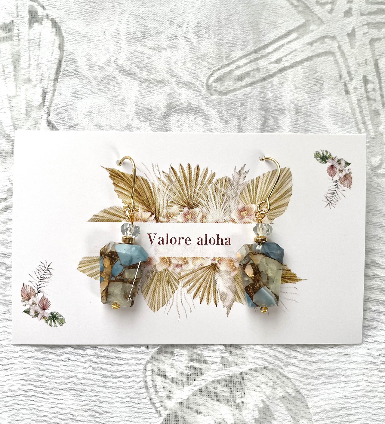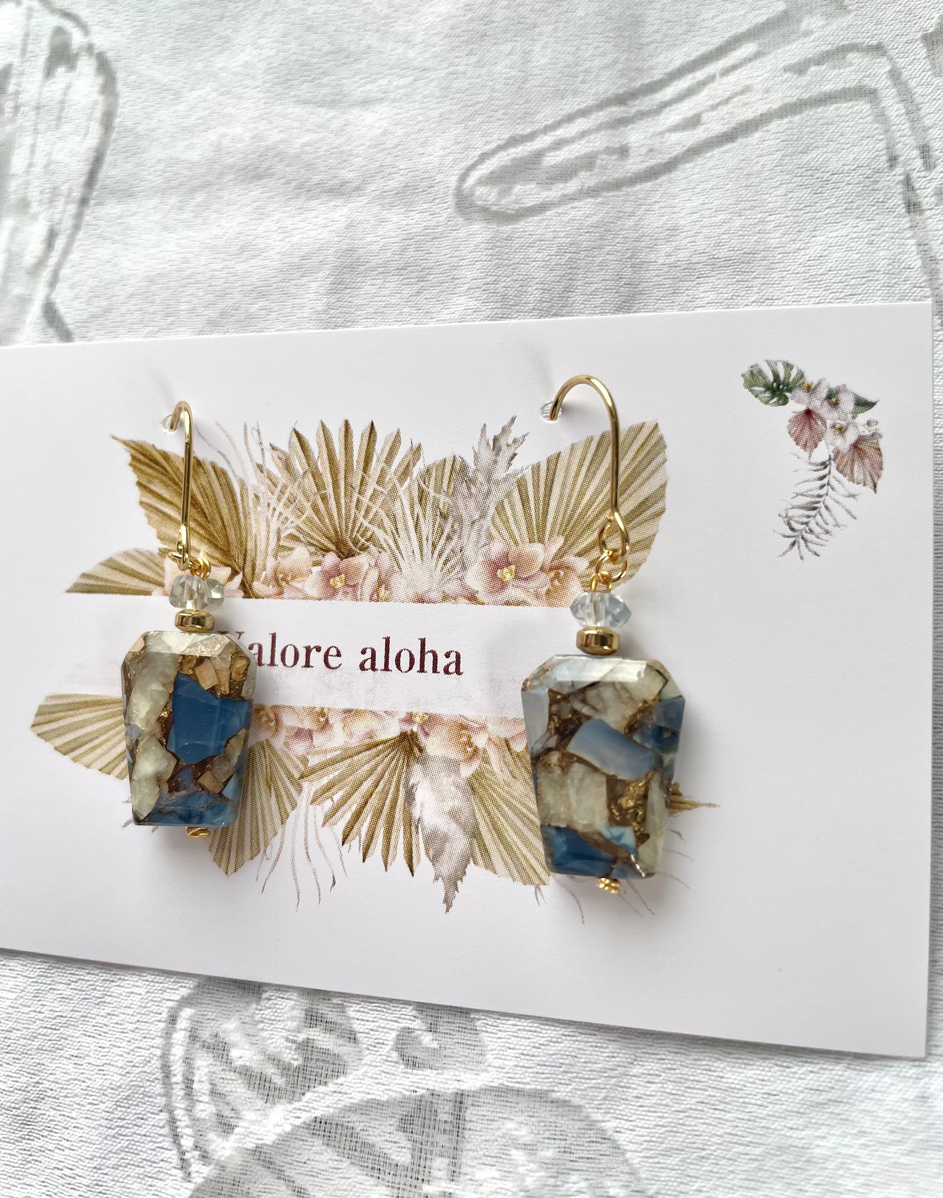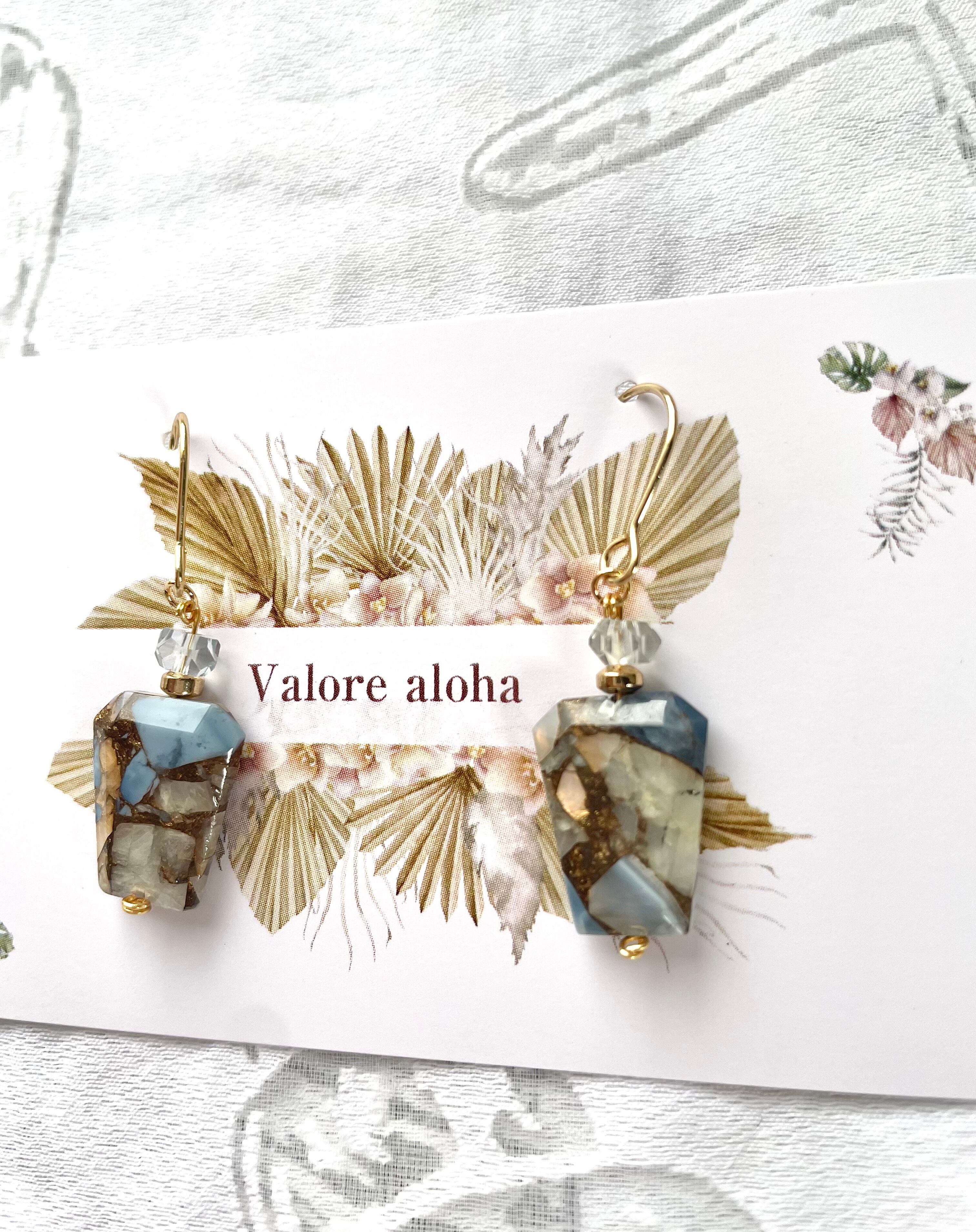 ブルーオパールとカルサイトコッパーのブレンドされたピアスでオシャレ倍増です☆
