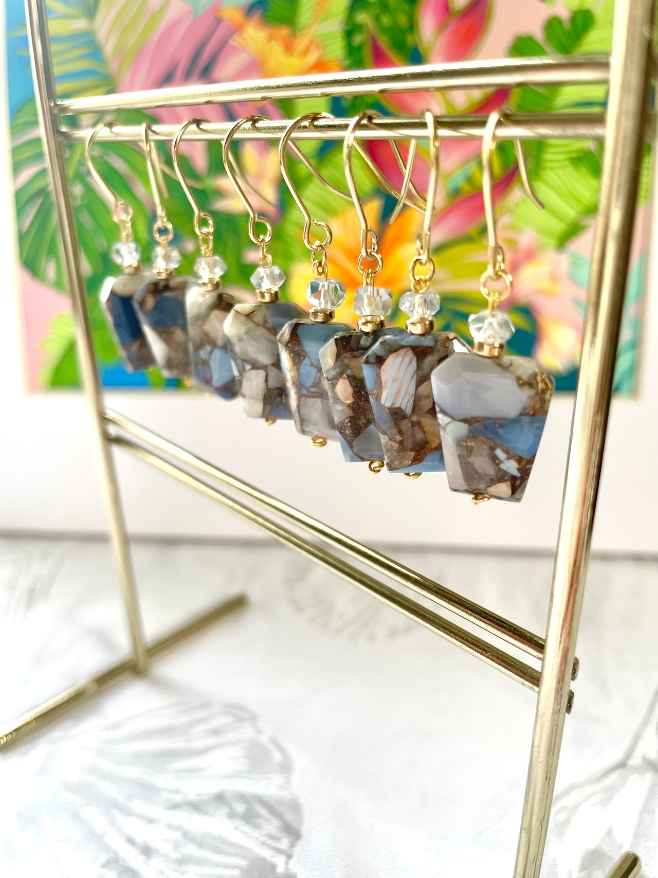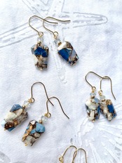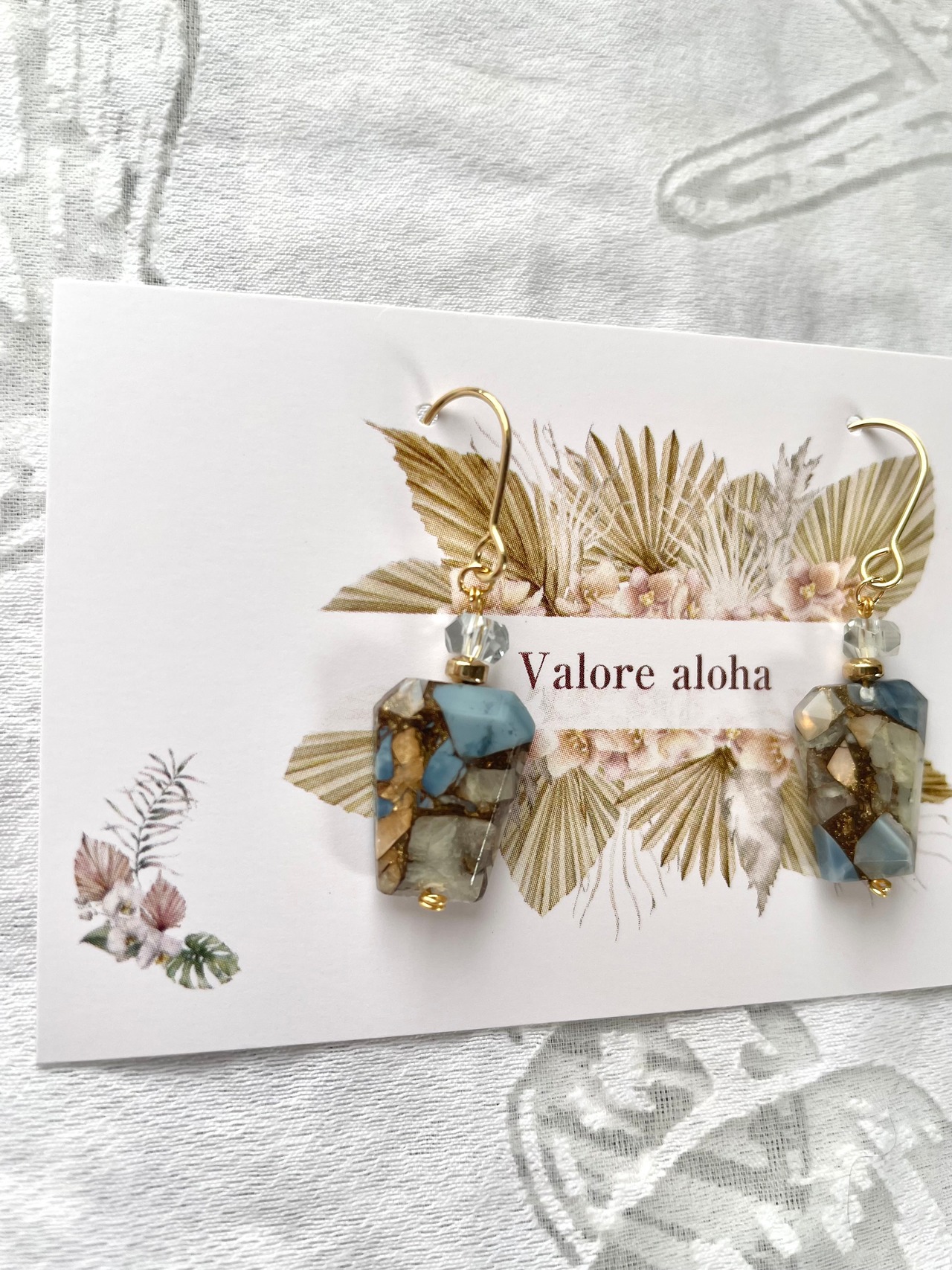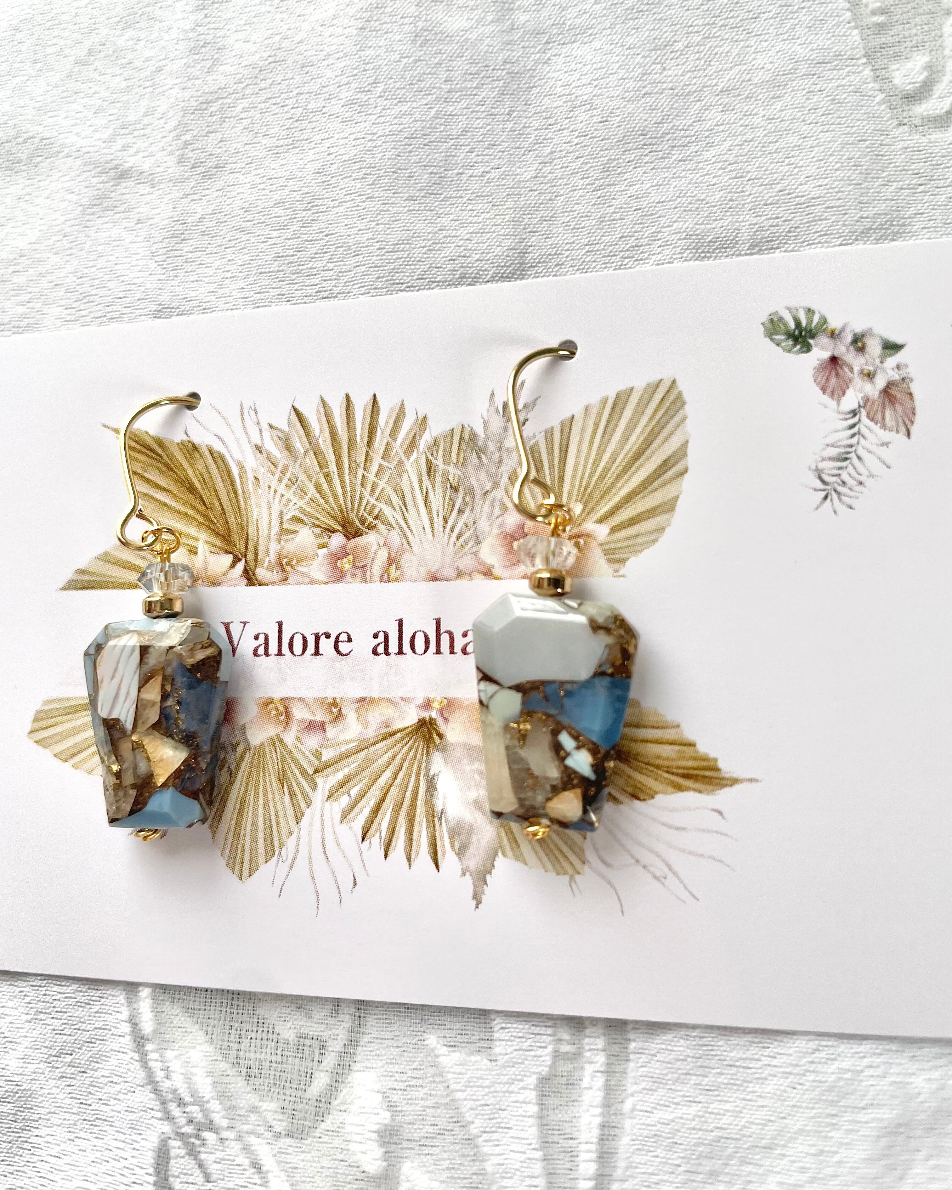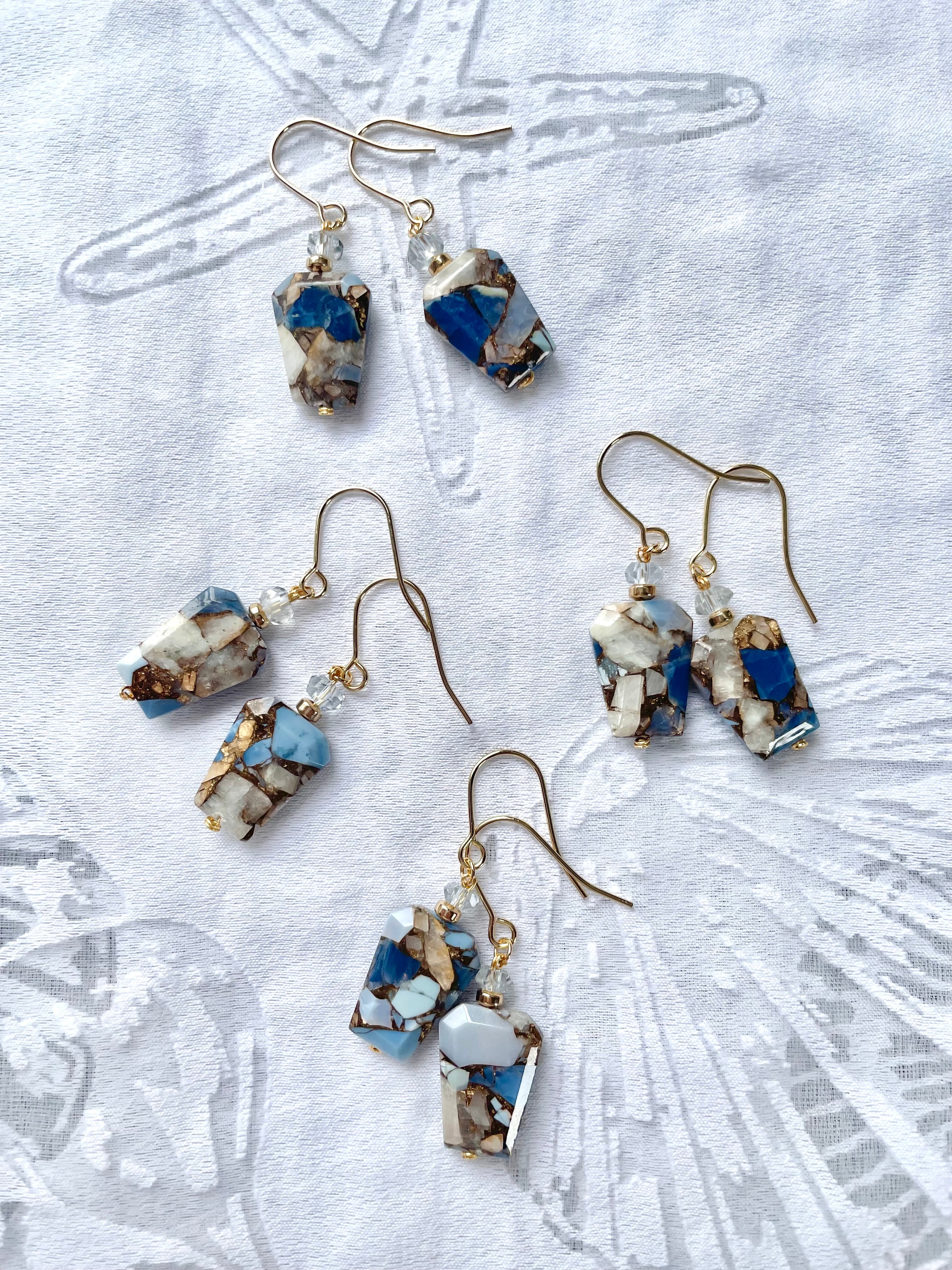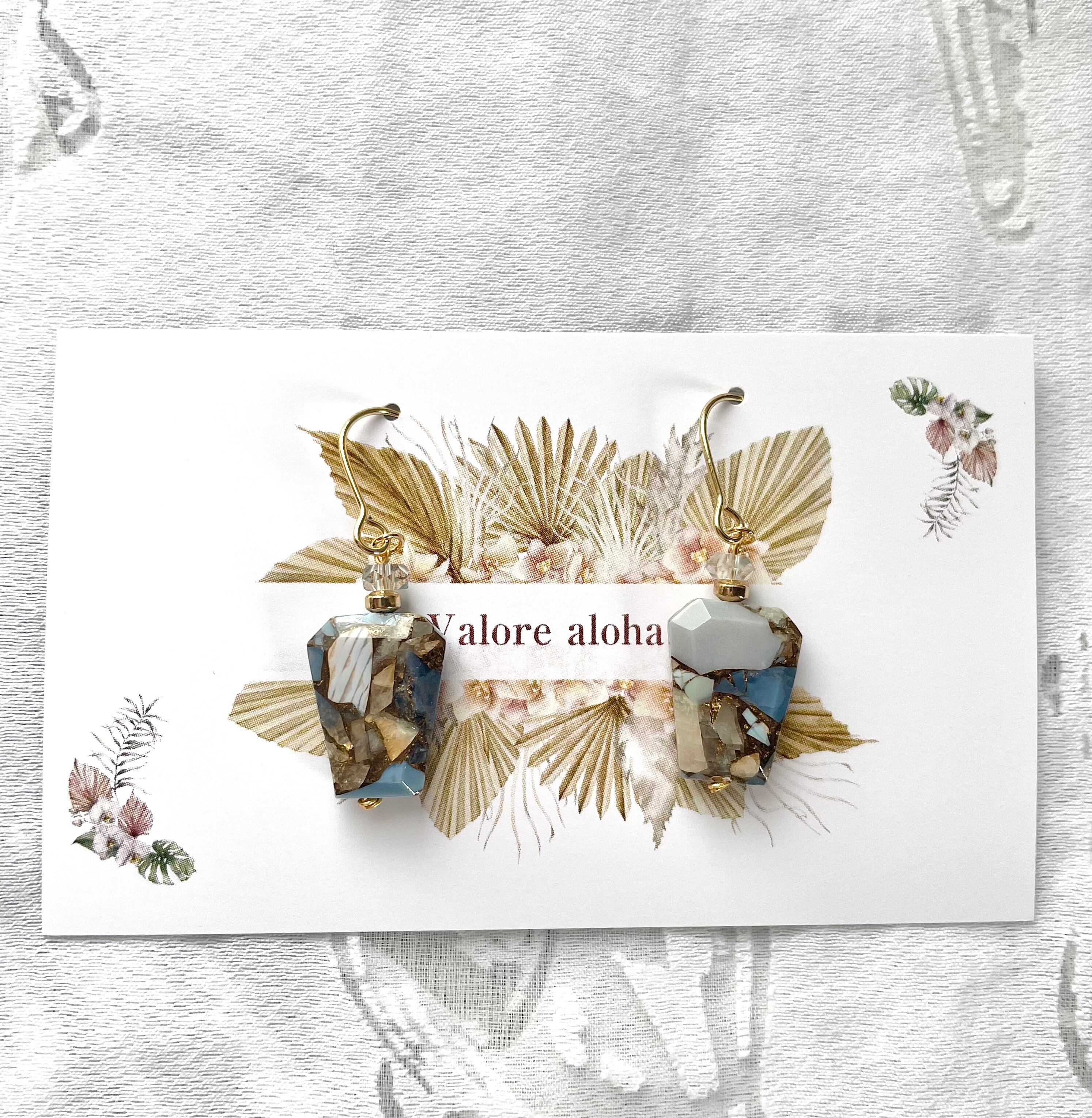 ブルーオパールとカルサイトコッパーのブレンドされたピアスでオシャレ倍増です☆