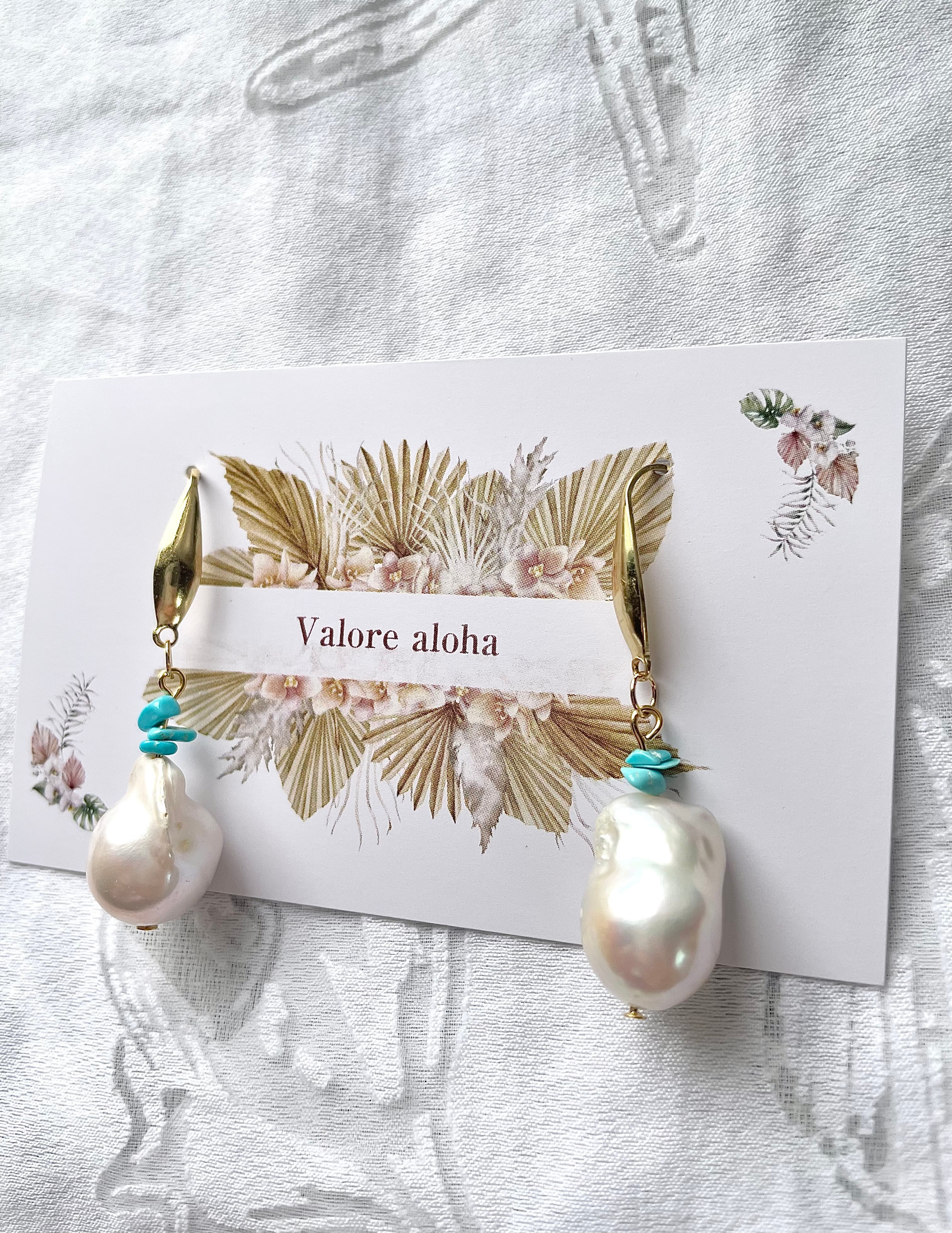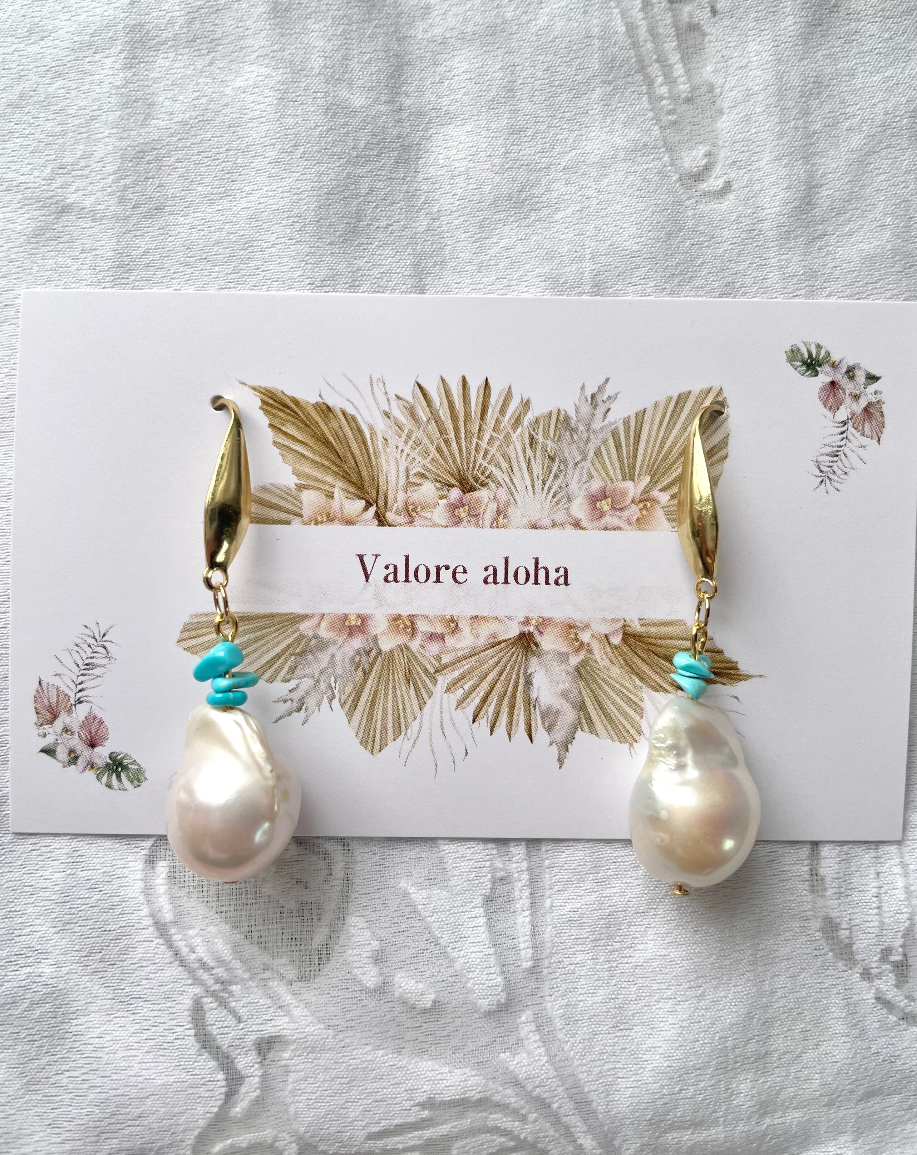 あこやパールの持つ高貴なエネルギーと、スリーピングビューティーターコイズの明るさが、お顔周りを華やかに彩ります。特別なお出かけはもちろん、カジュアルな日常のコーディネートにもぴったりです。