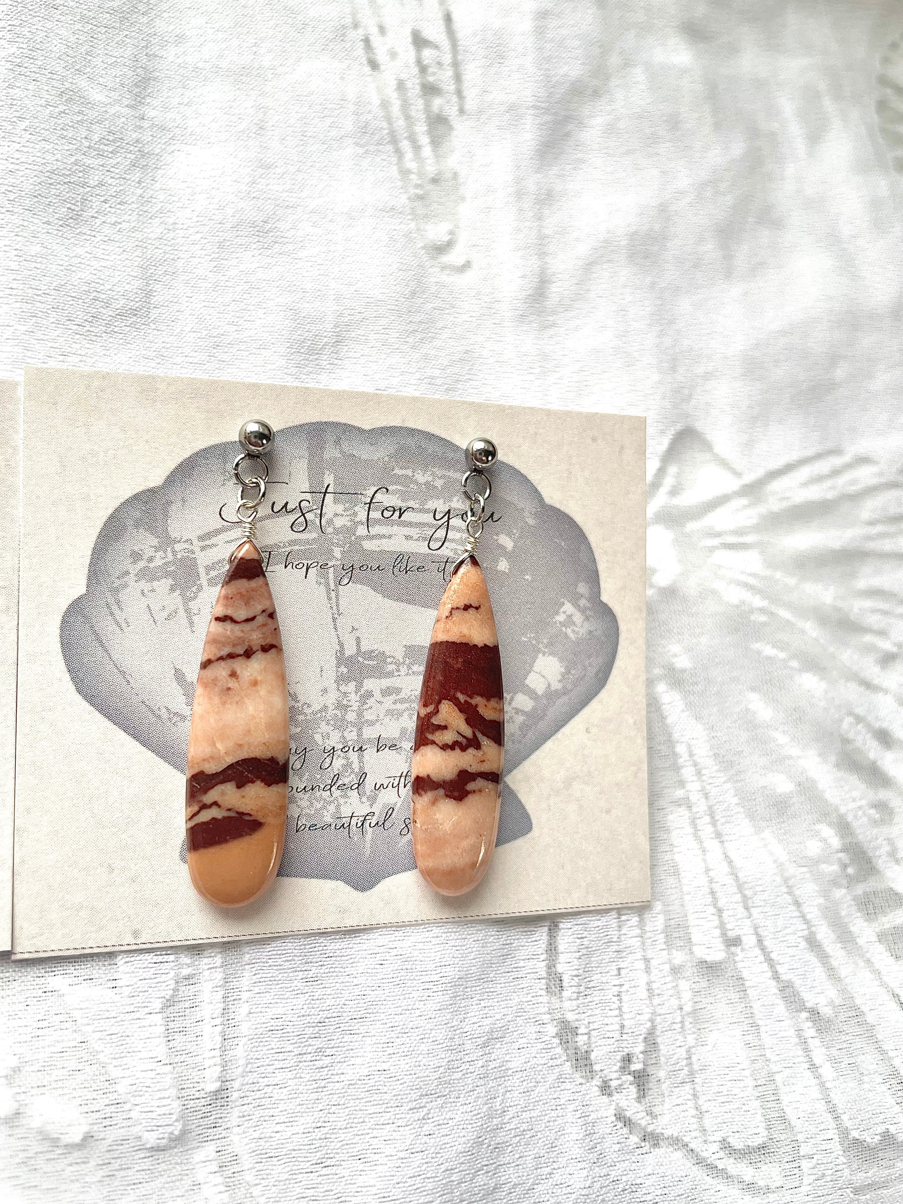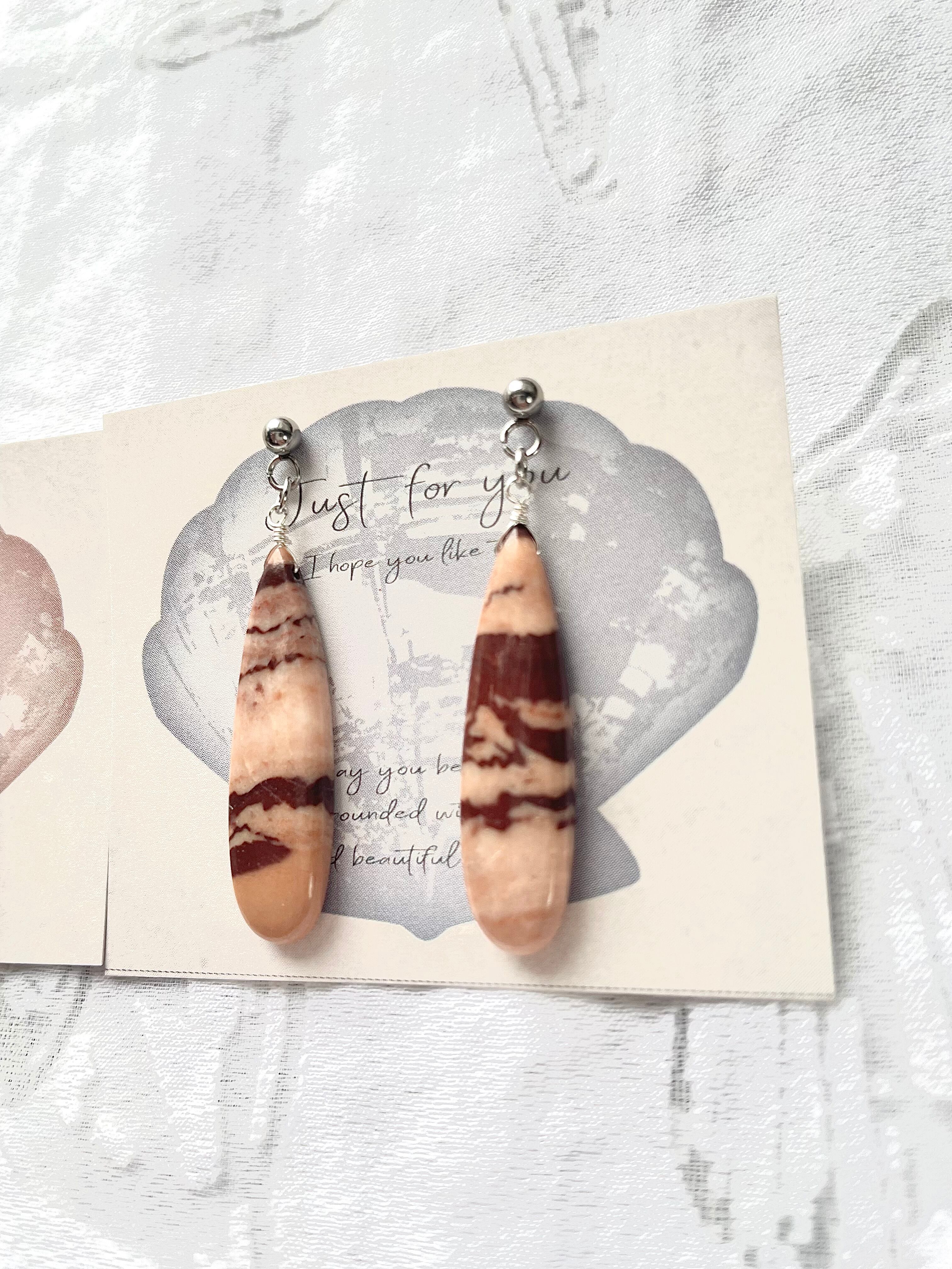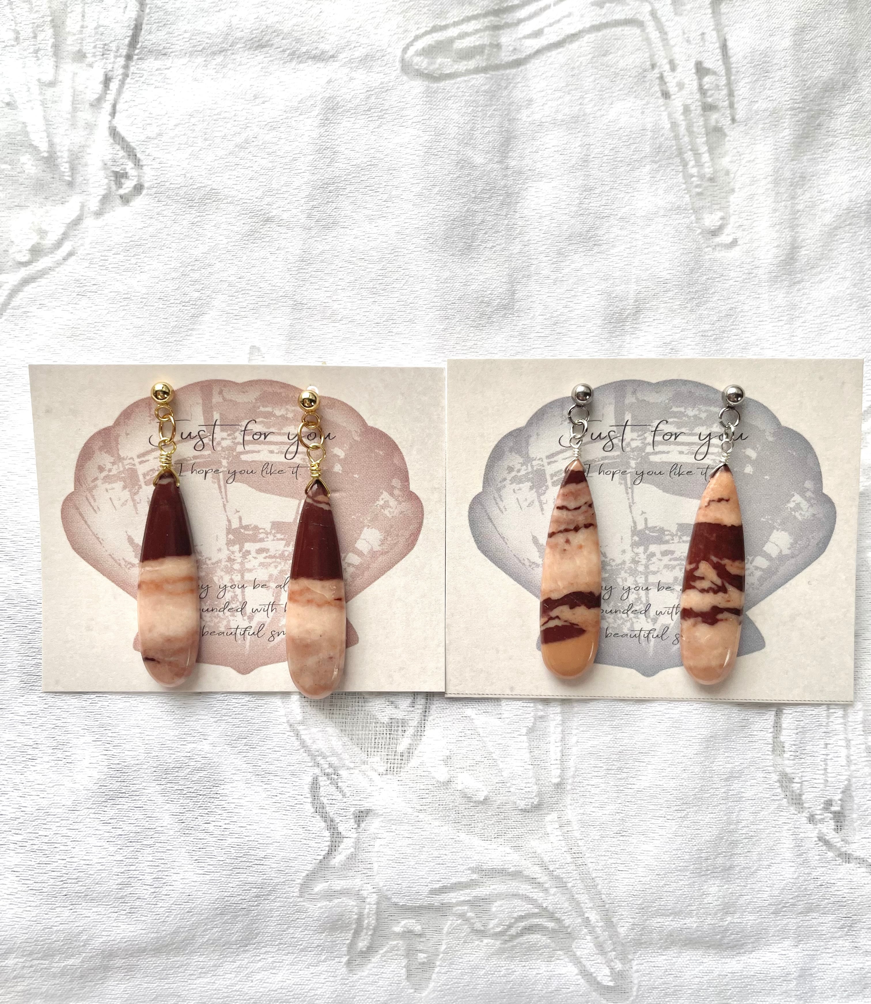 天然石 カプチーノジャスパーのピアスは、コーヒーのような温かみのある色合いが特徴的な魅力的なアイテムです!カプチーノジャスパーの自然な美しさが、シンプルでありながらも個性的なスタイルを演出します。