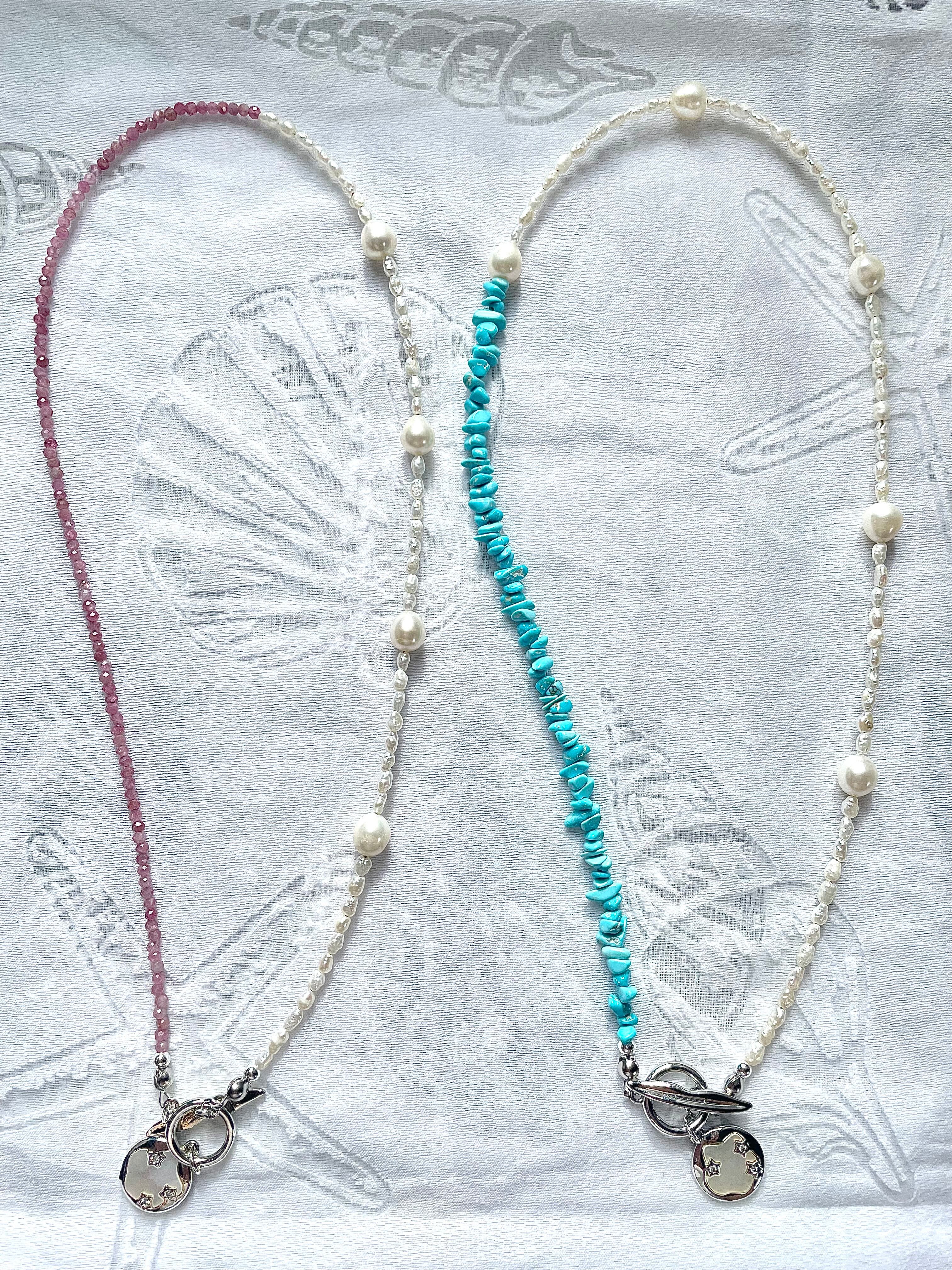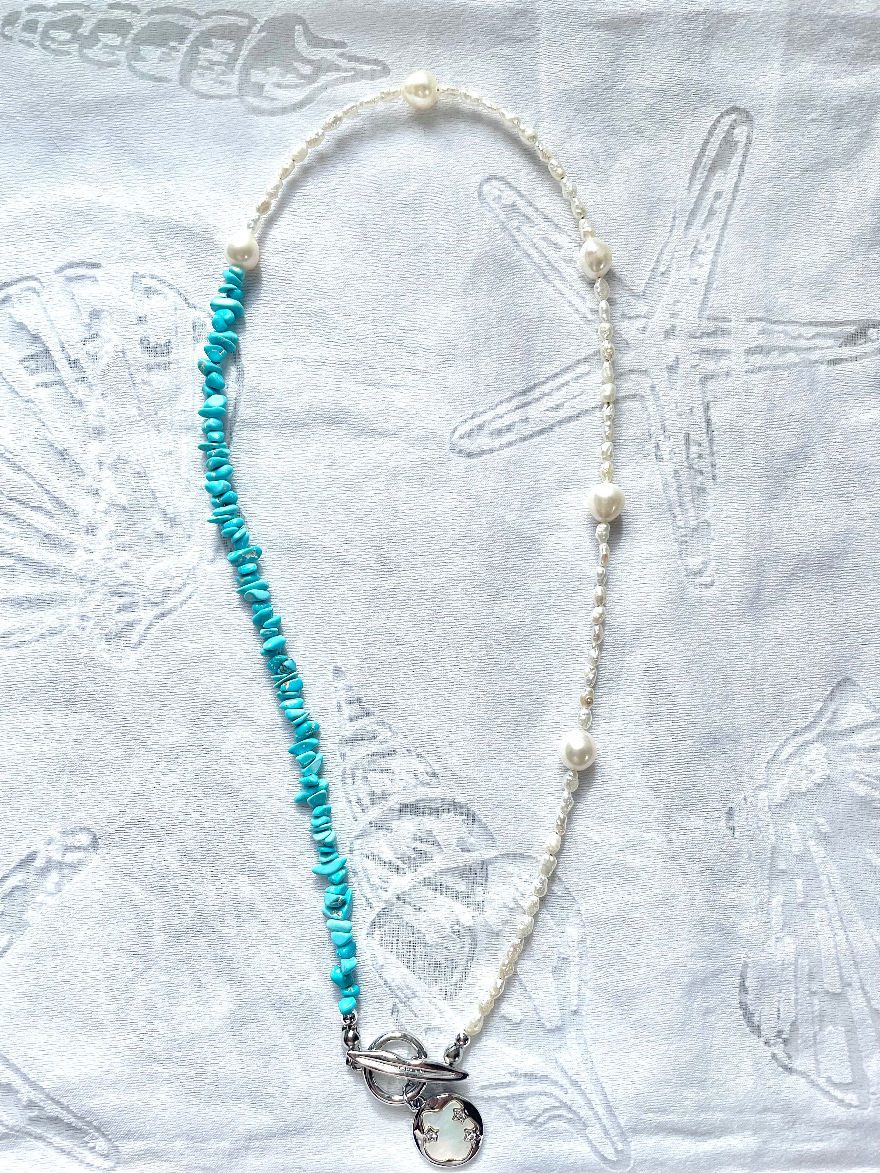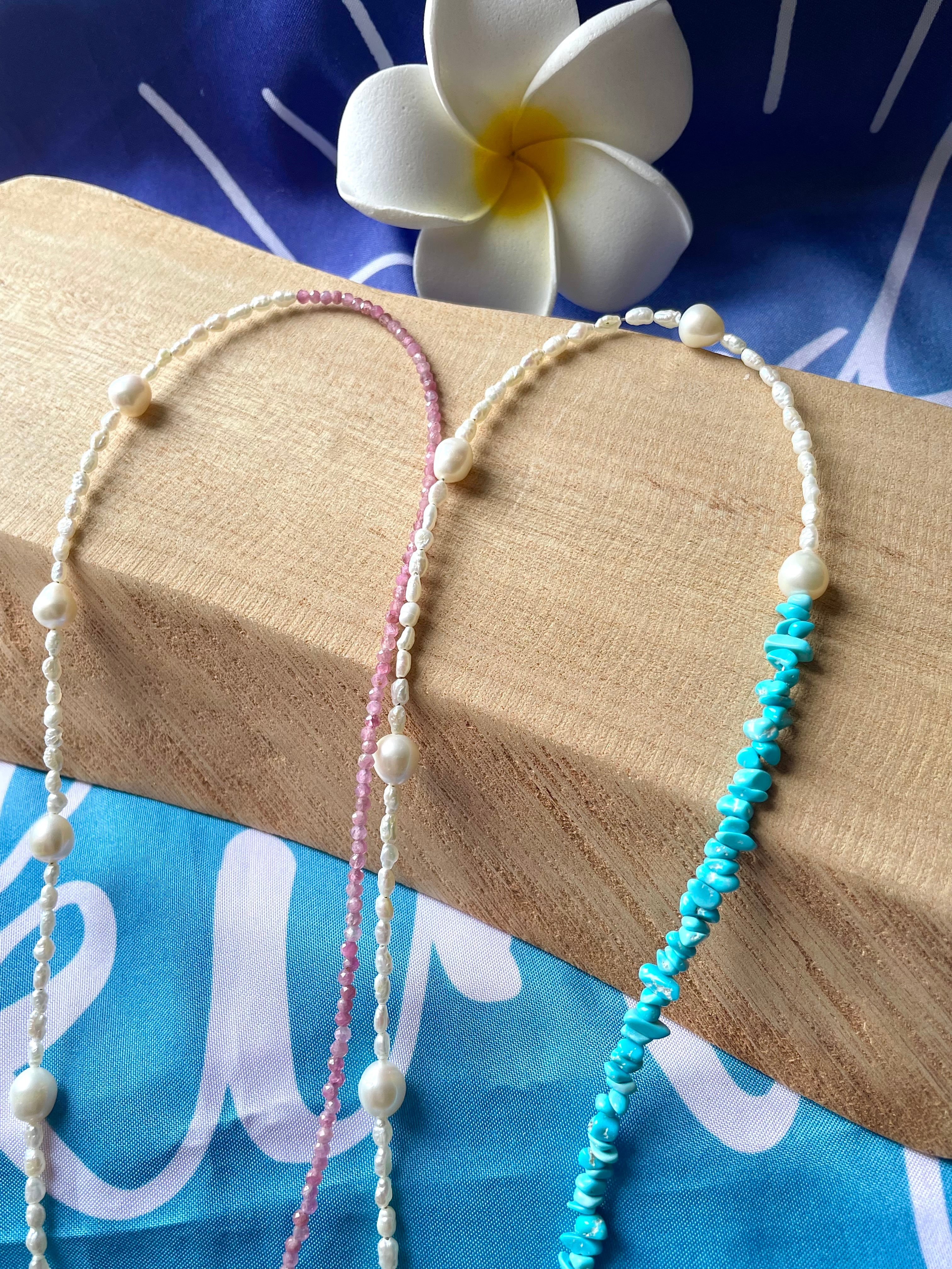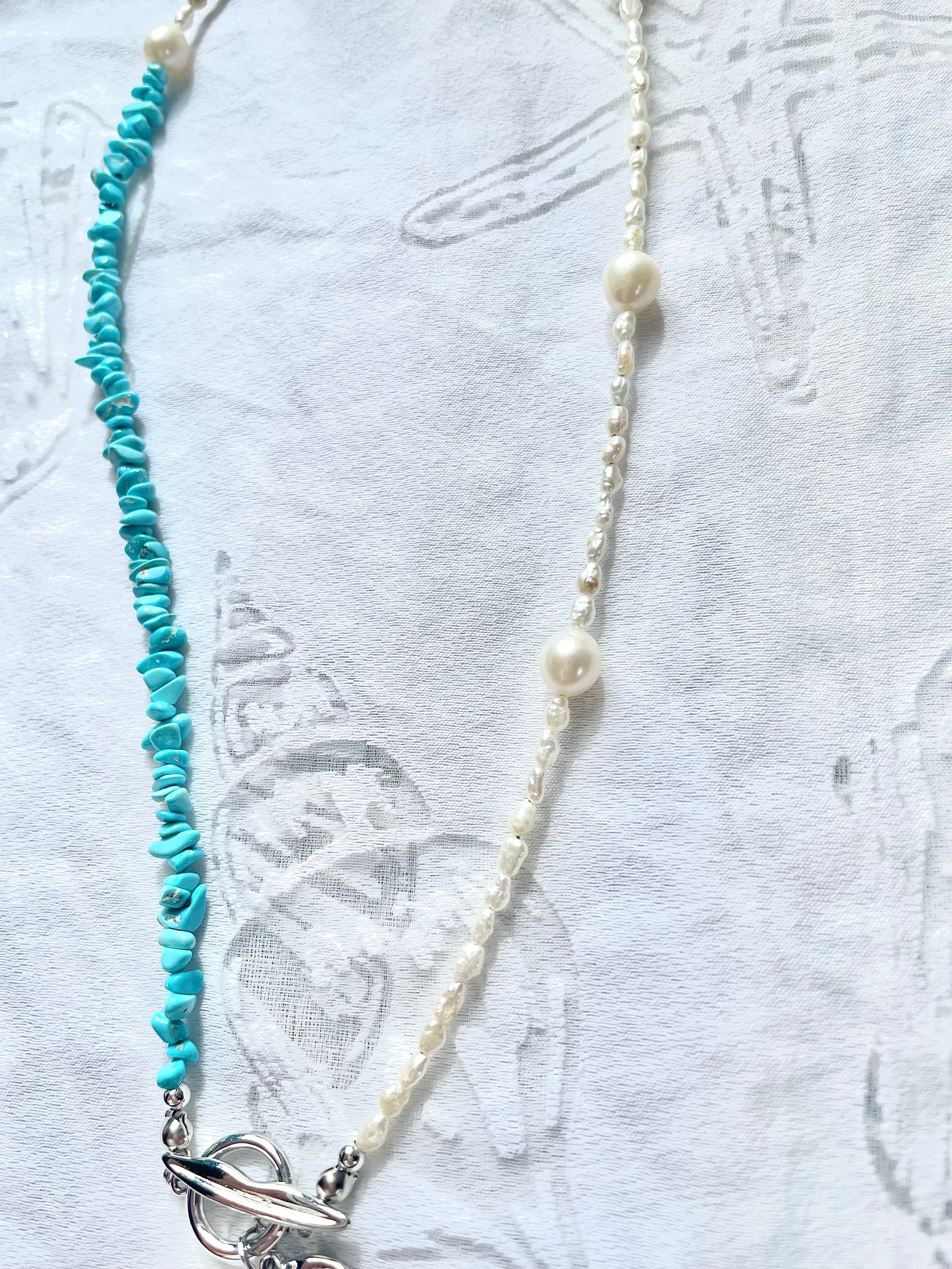 スリーピングビューティーターコイズと淡水パールネックレス 夏にピッタリなアイテム