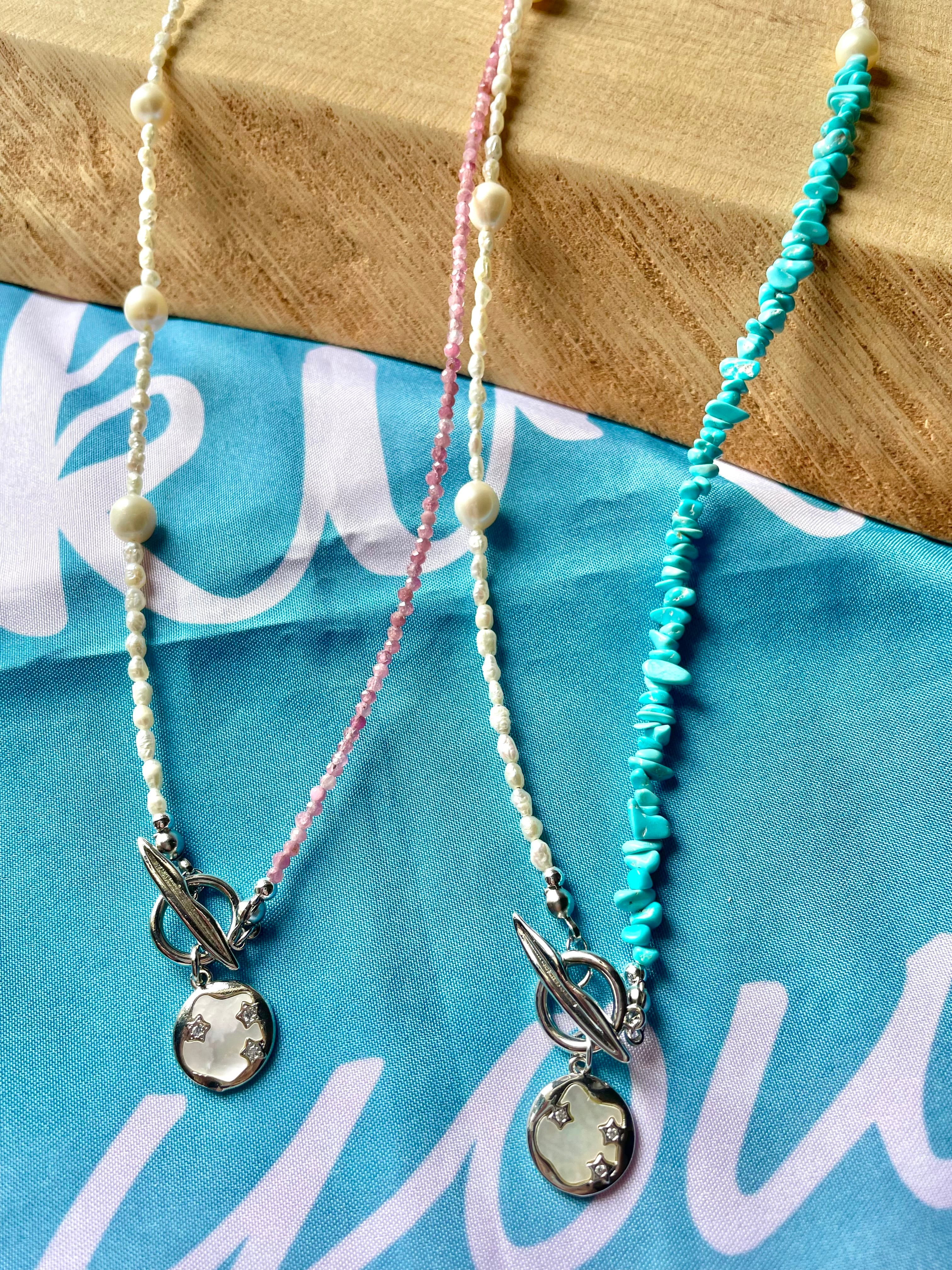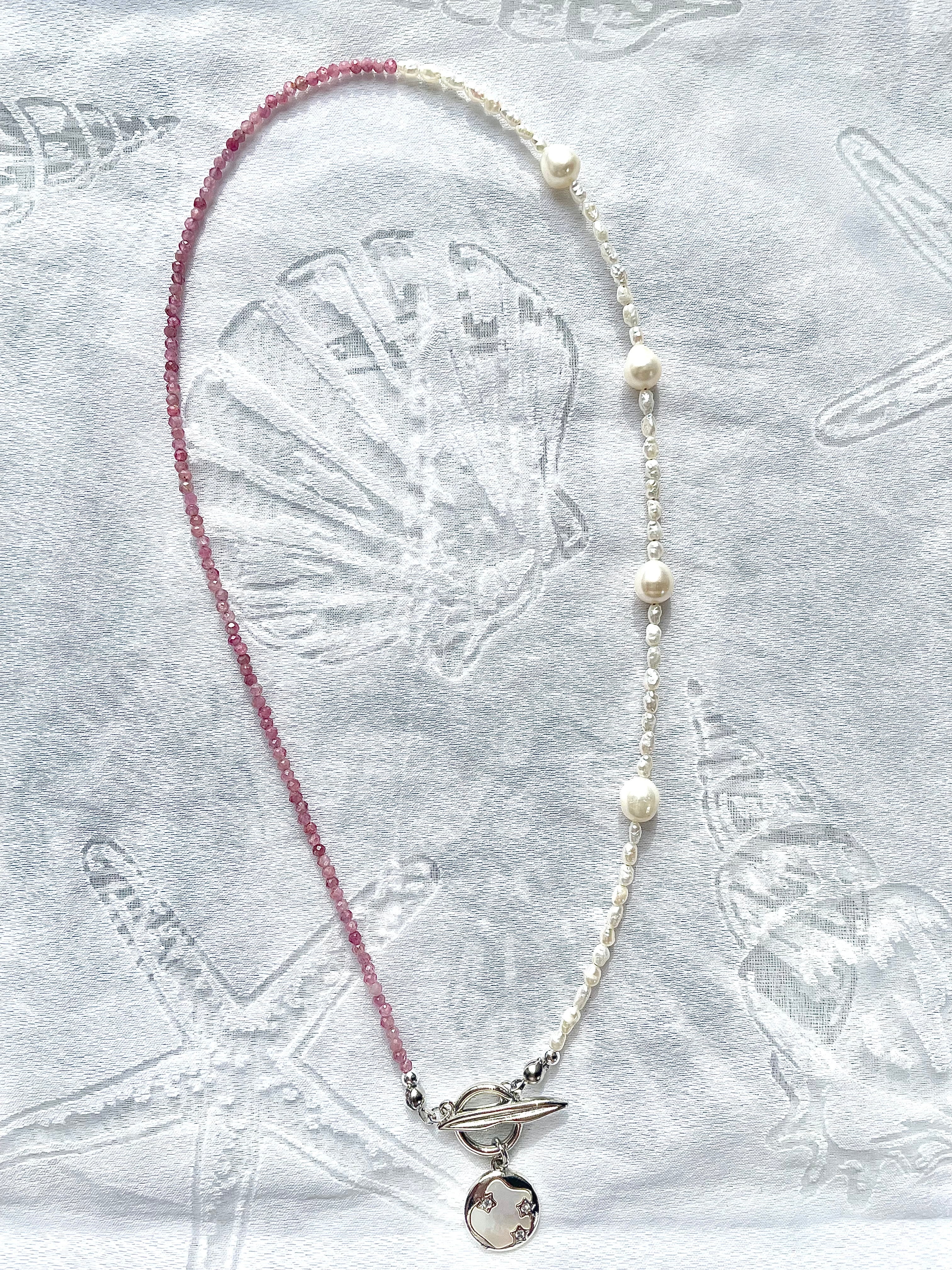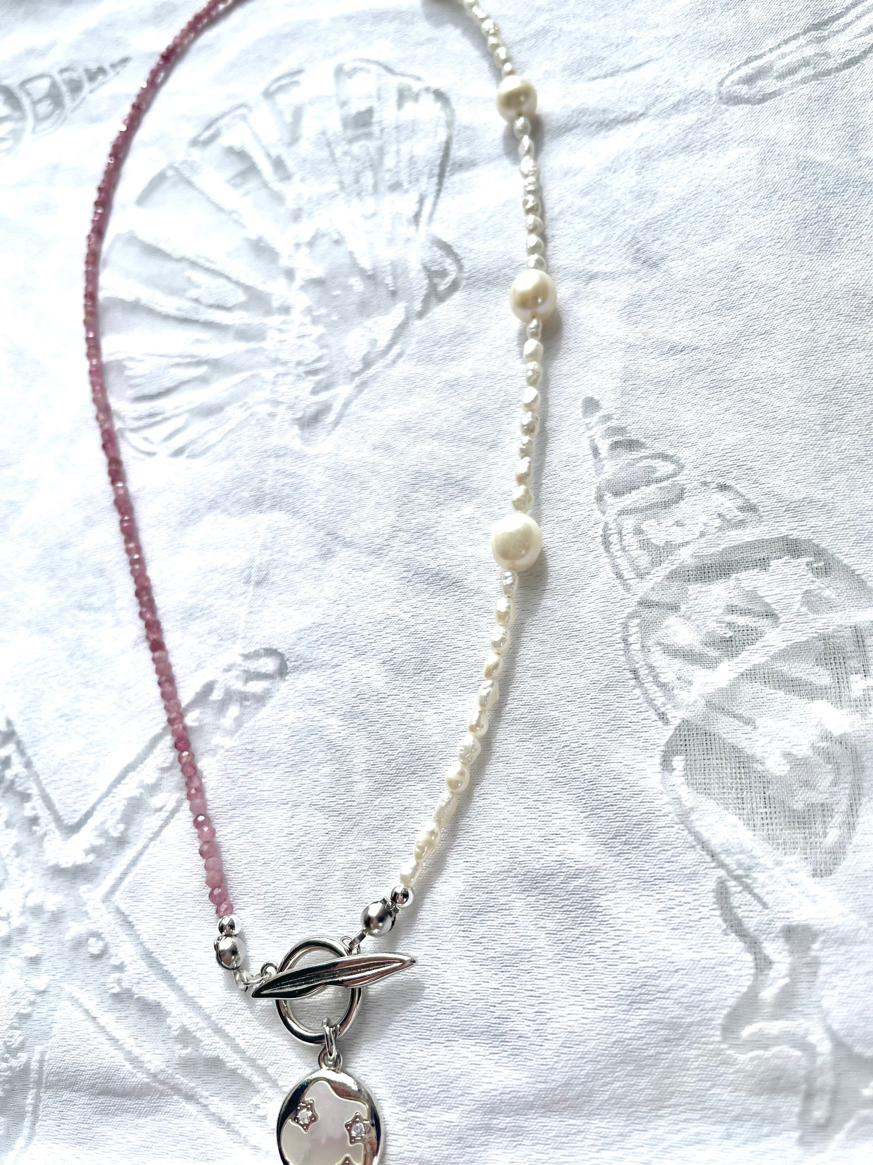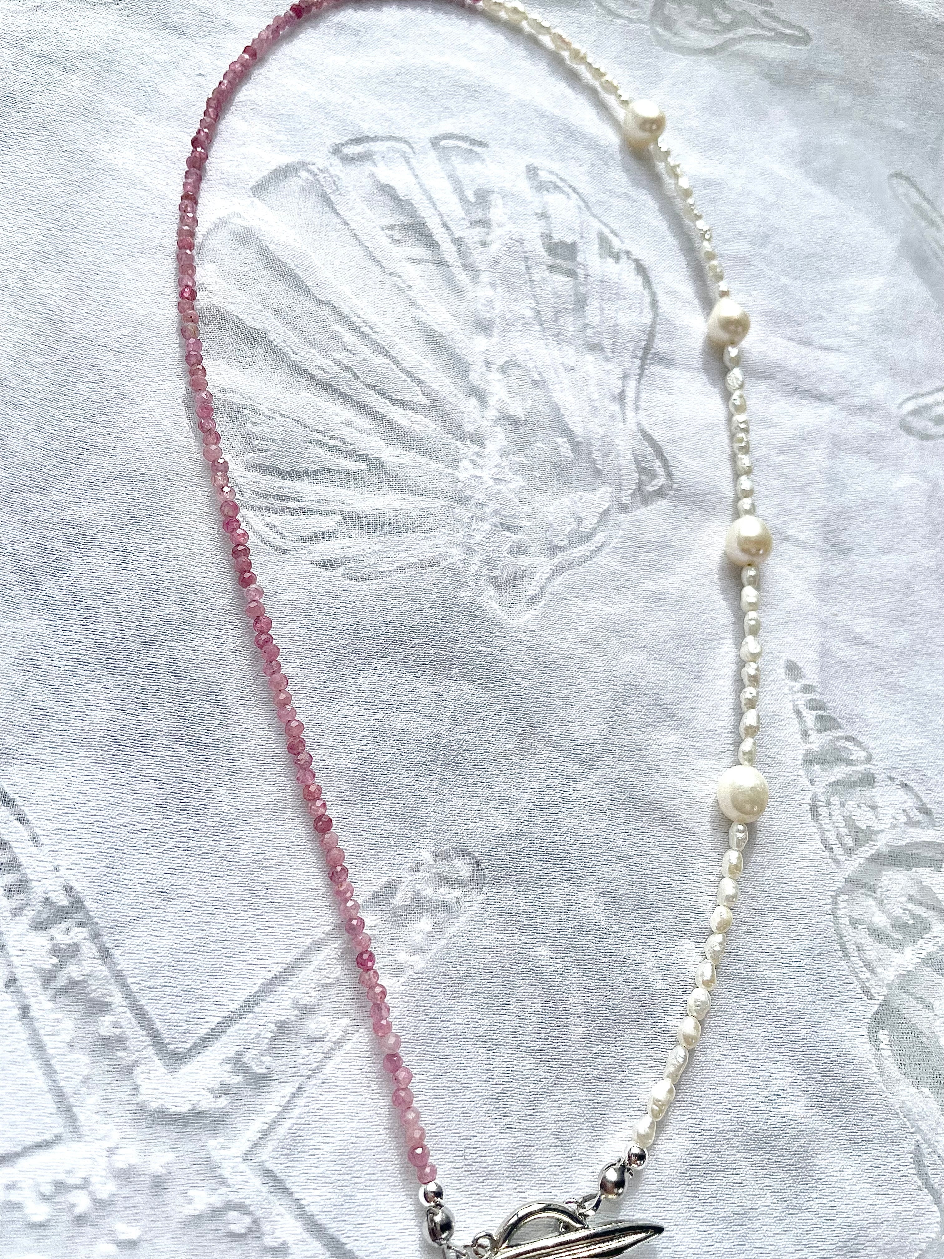 ピンクトルマリンと淡水パールのネックレスは、愛らしいピンクトルマリンと上品な淡水パールが絶妙に融合した魅力的なアイテムです。