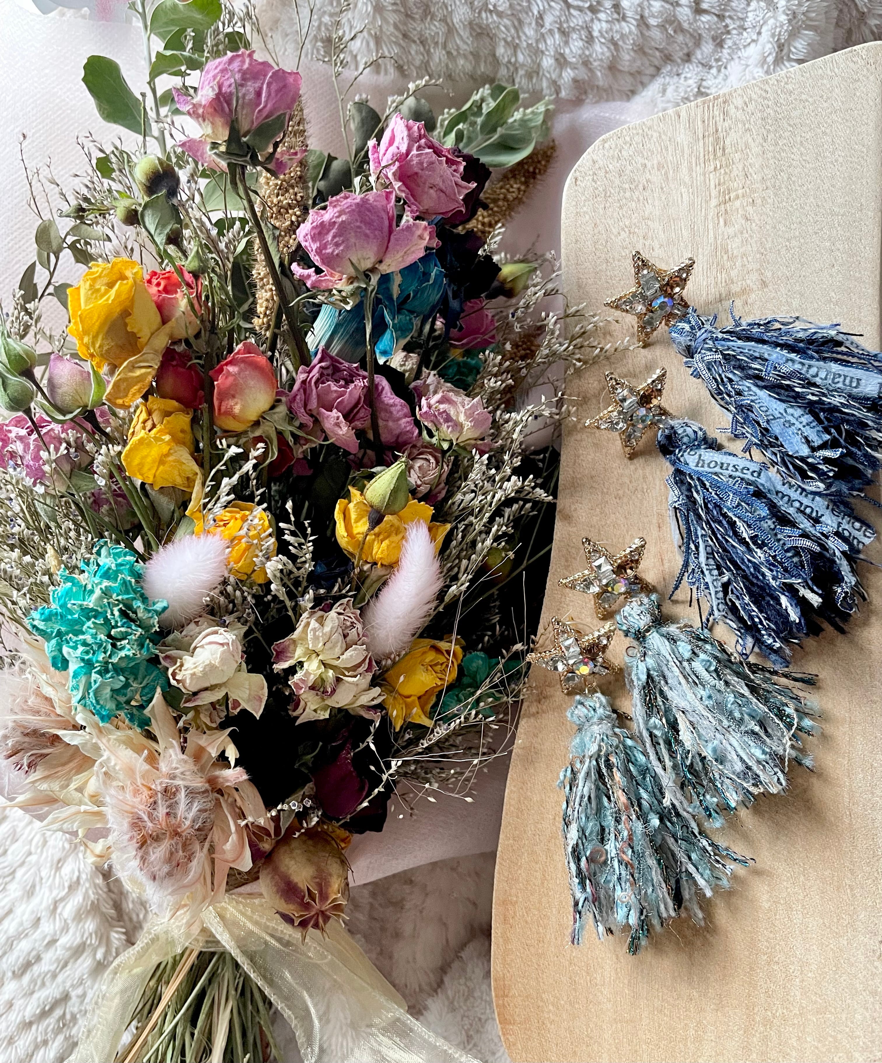 デニム風の紺色タイプとくすみカラーのミントブルータイプ2種類あります。