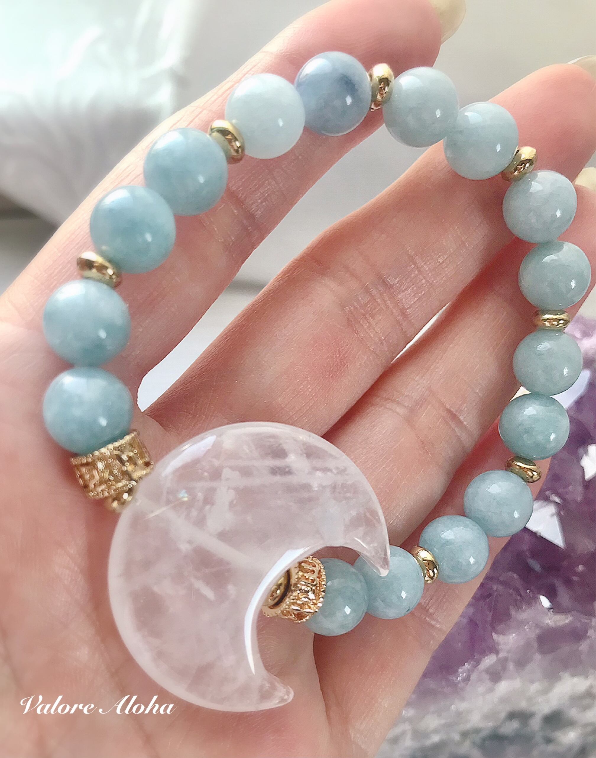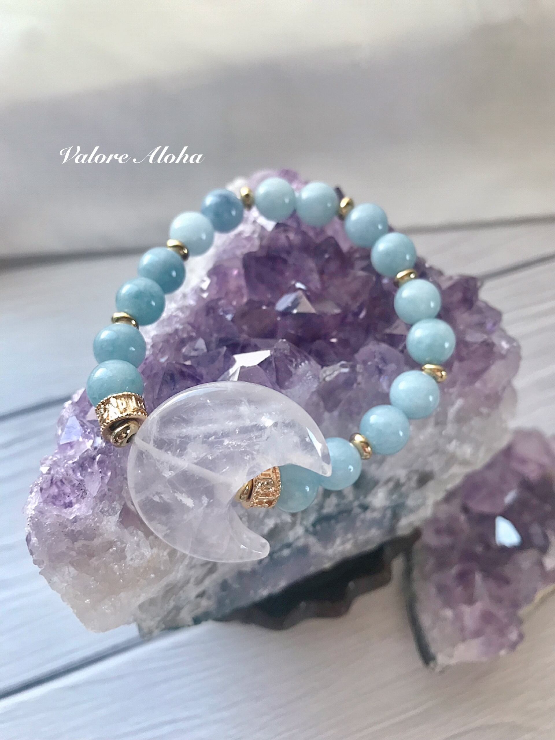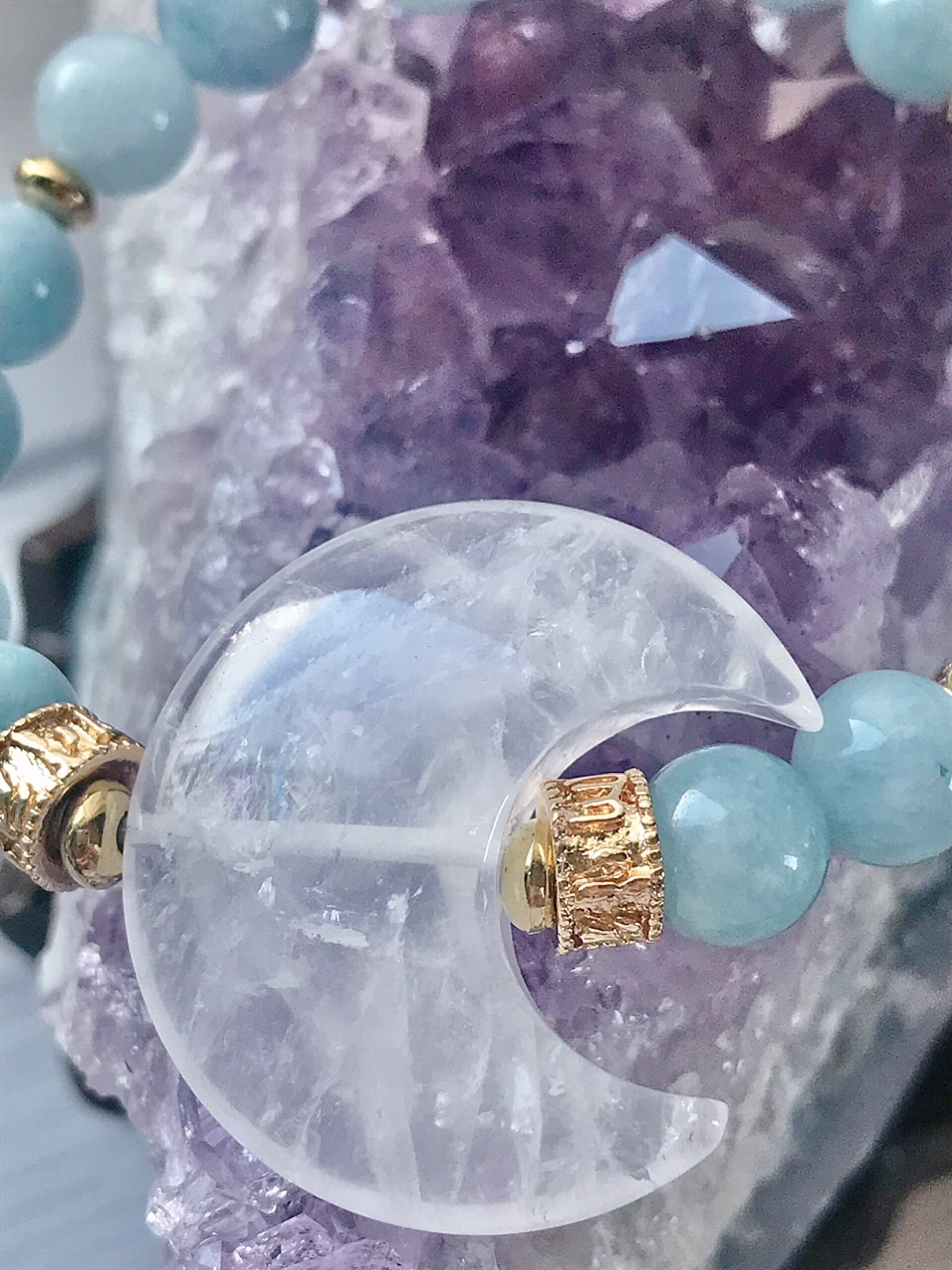 アクアマリンと水晶月のブレスレットです。