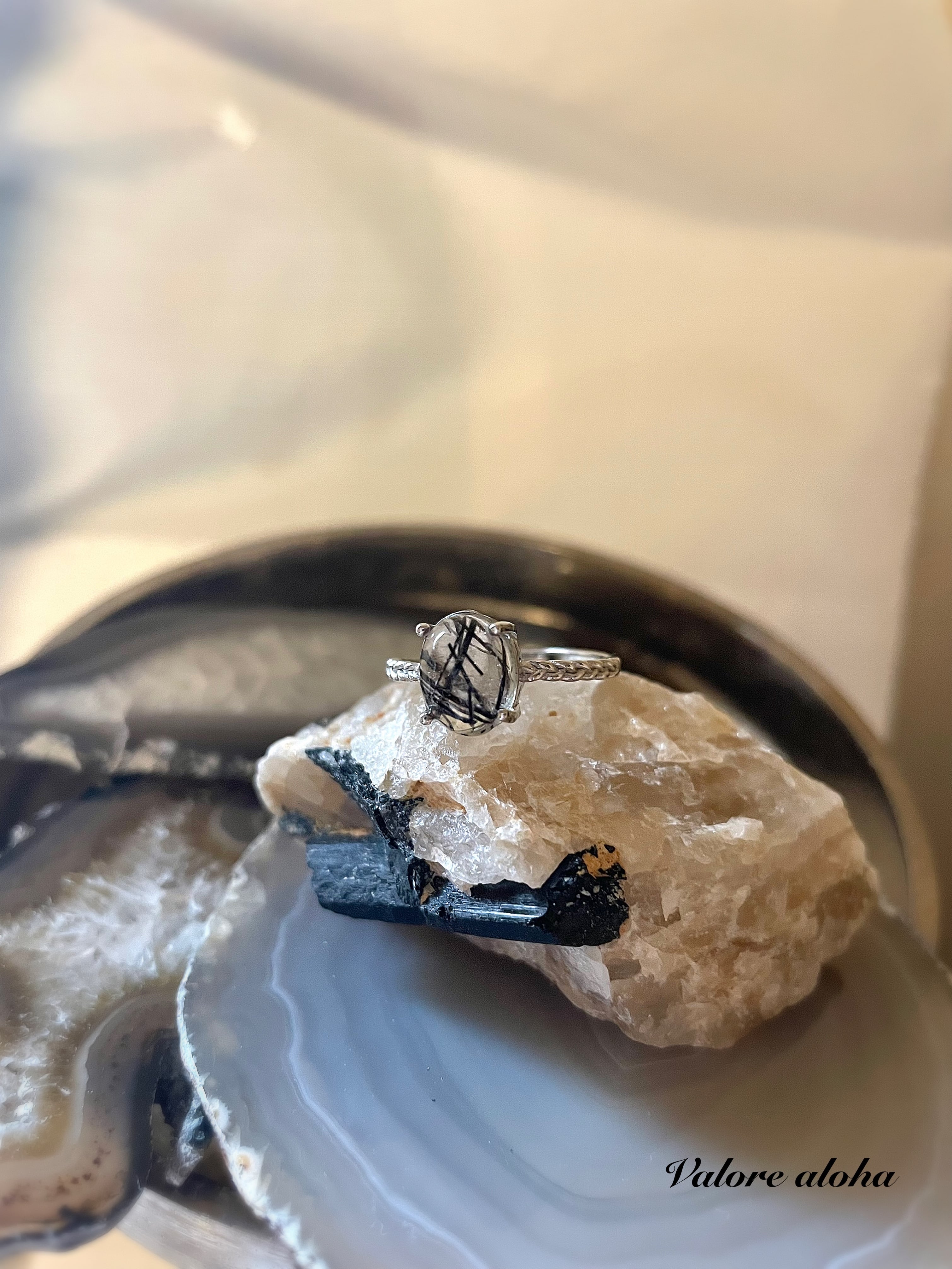 ブラックルチルクォーツ 天然石リング フリーサイズ