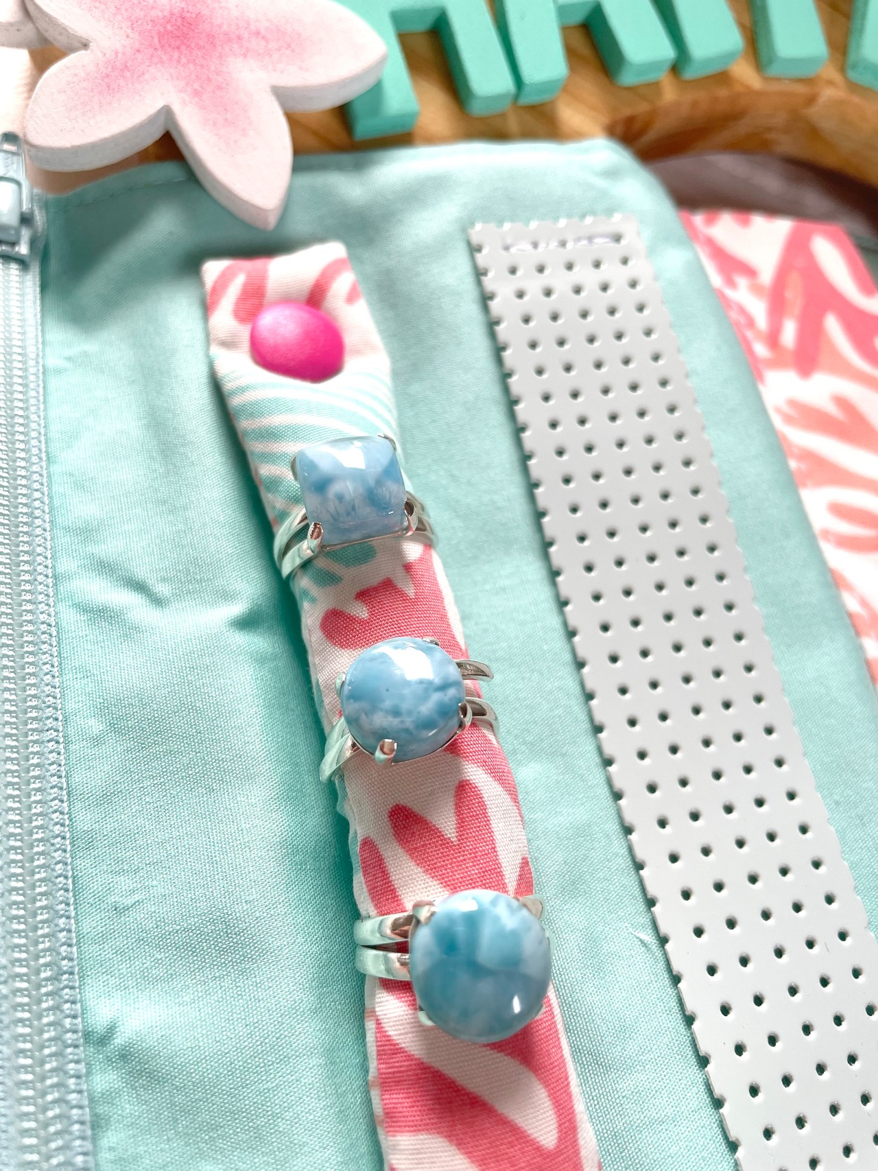 ラリマーは、心の平穏やリラクゼーションを促す石とされており、特にストレス軽減に効果があると言われています。その美しい青色が、日常に癒しのひとときを提供してくれるかもしれませんね(*^^*)