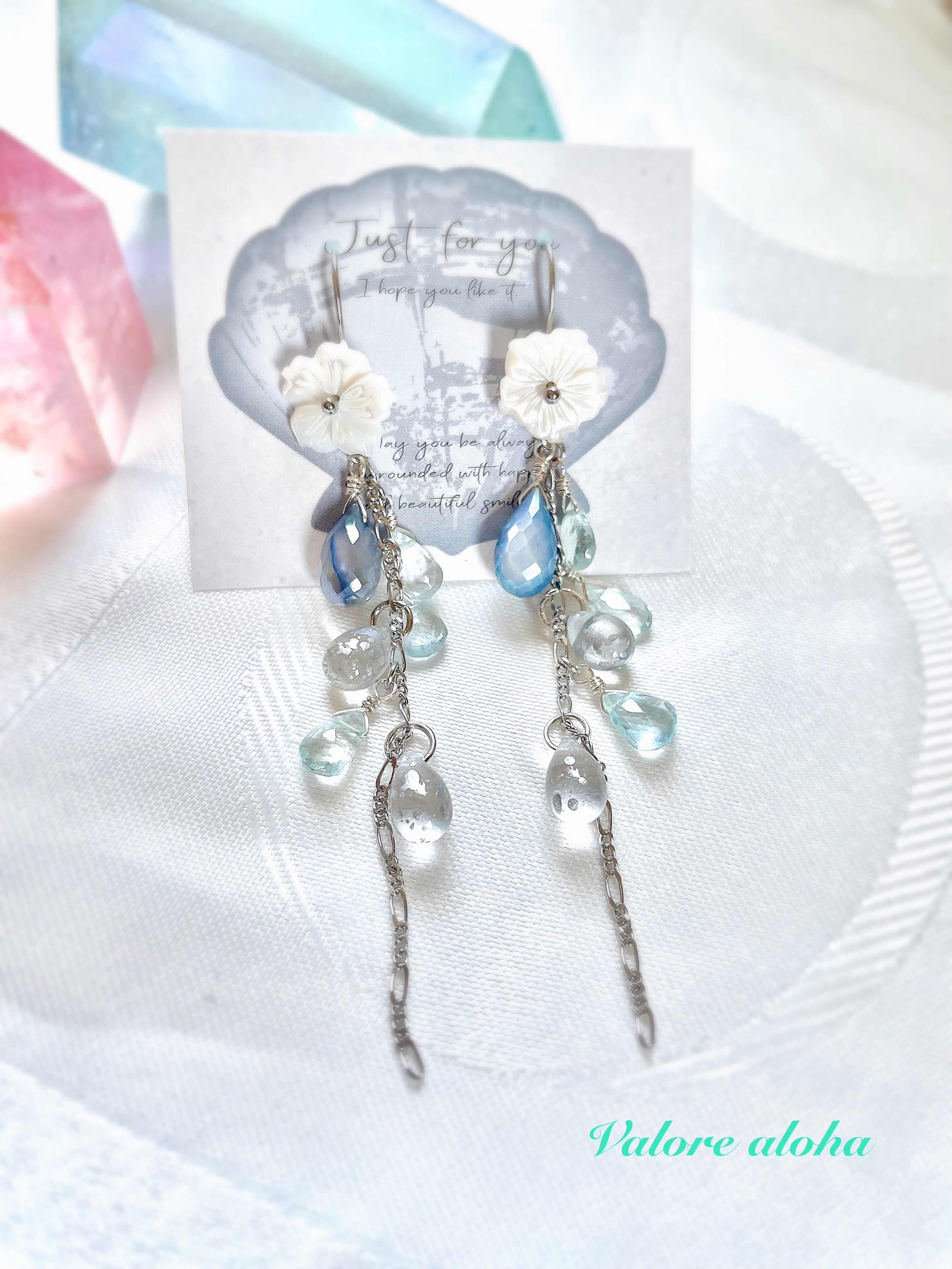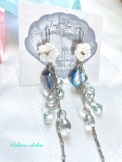柔らかな色合いのシェルのお花と爽やかなアクアマリンを組み合わせたピアスです!