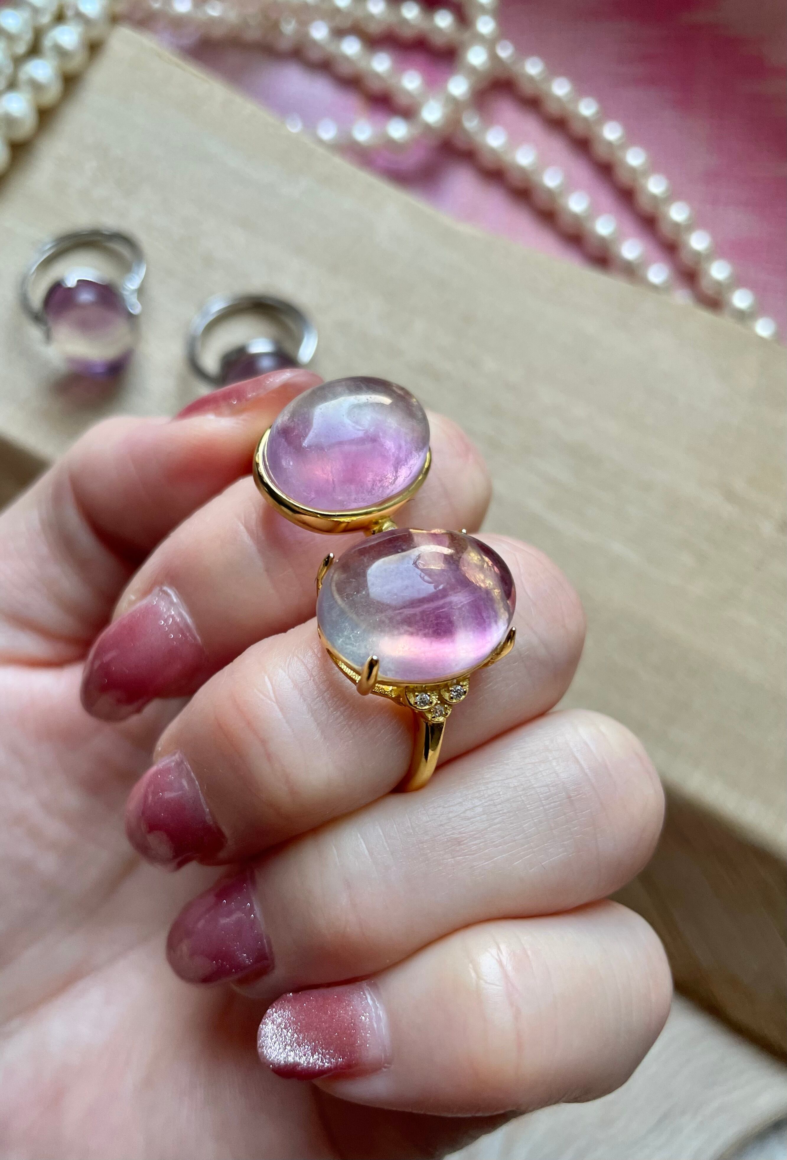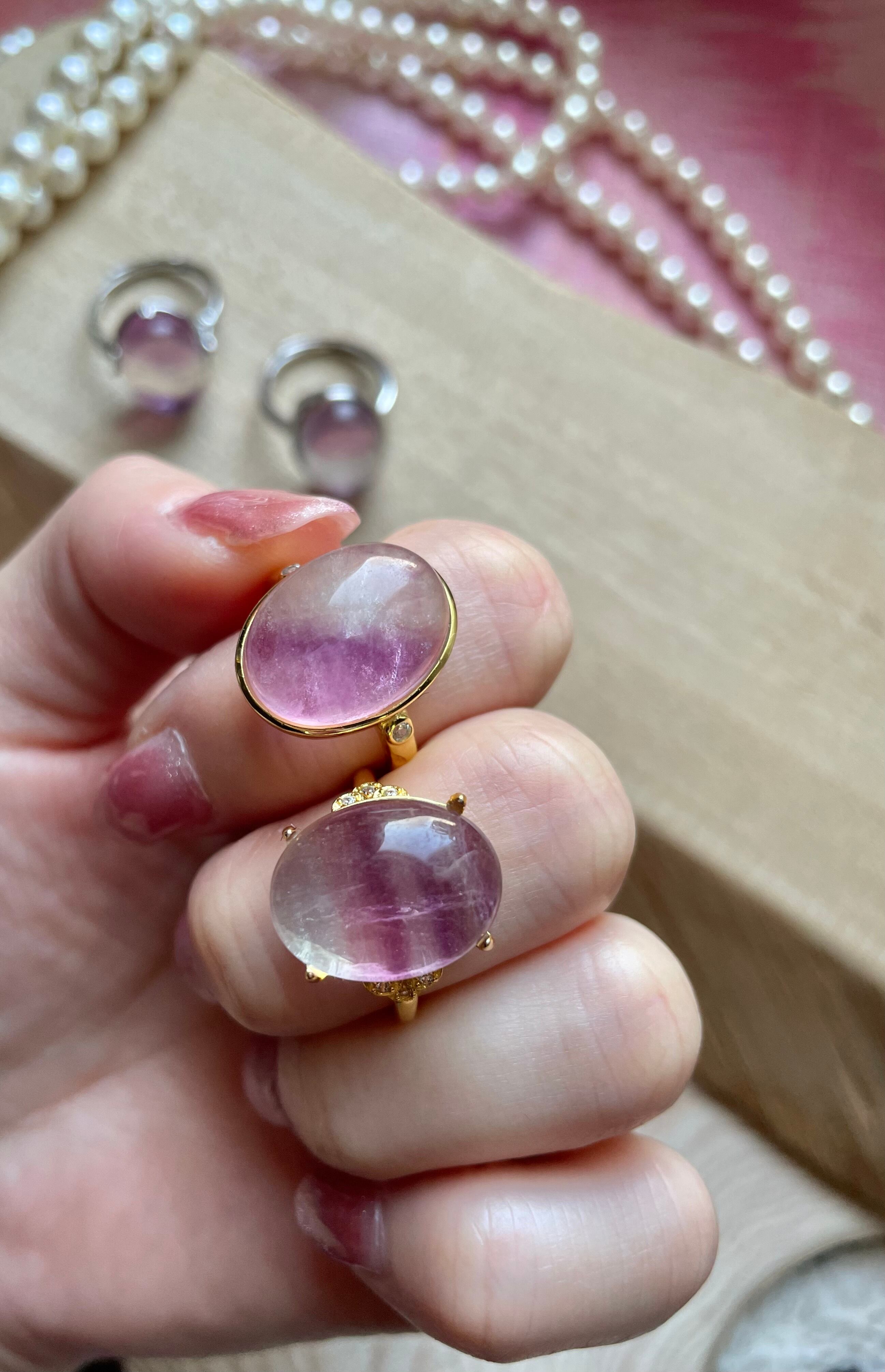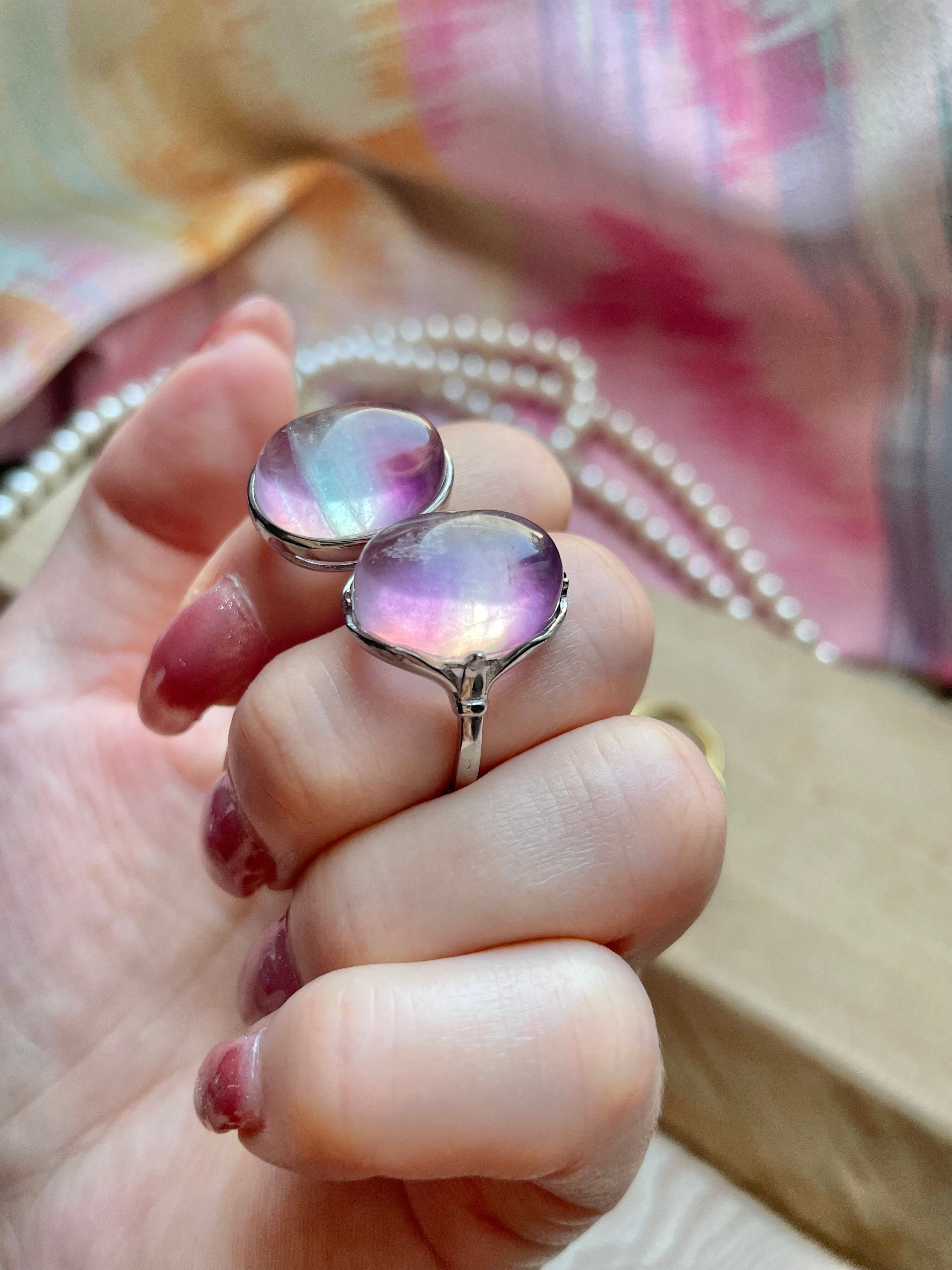 各リングはそれぞれ異なる色合いと模様を持っており、指元を彩る特別なアイテムとしてぴったりです。フローライトのユニークな輝きは、身に着ける人の個性を引き立ててくれることでしょう。