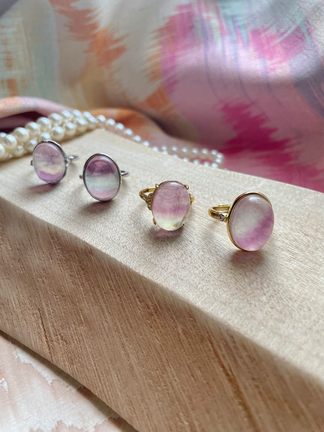 色とりどりの美しいフローライトを使用した天然石リング、4種類のご紹介です!