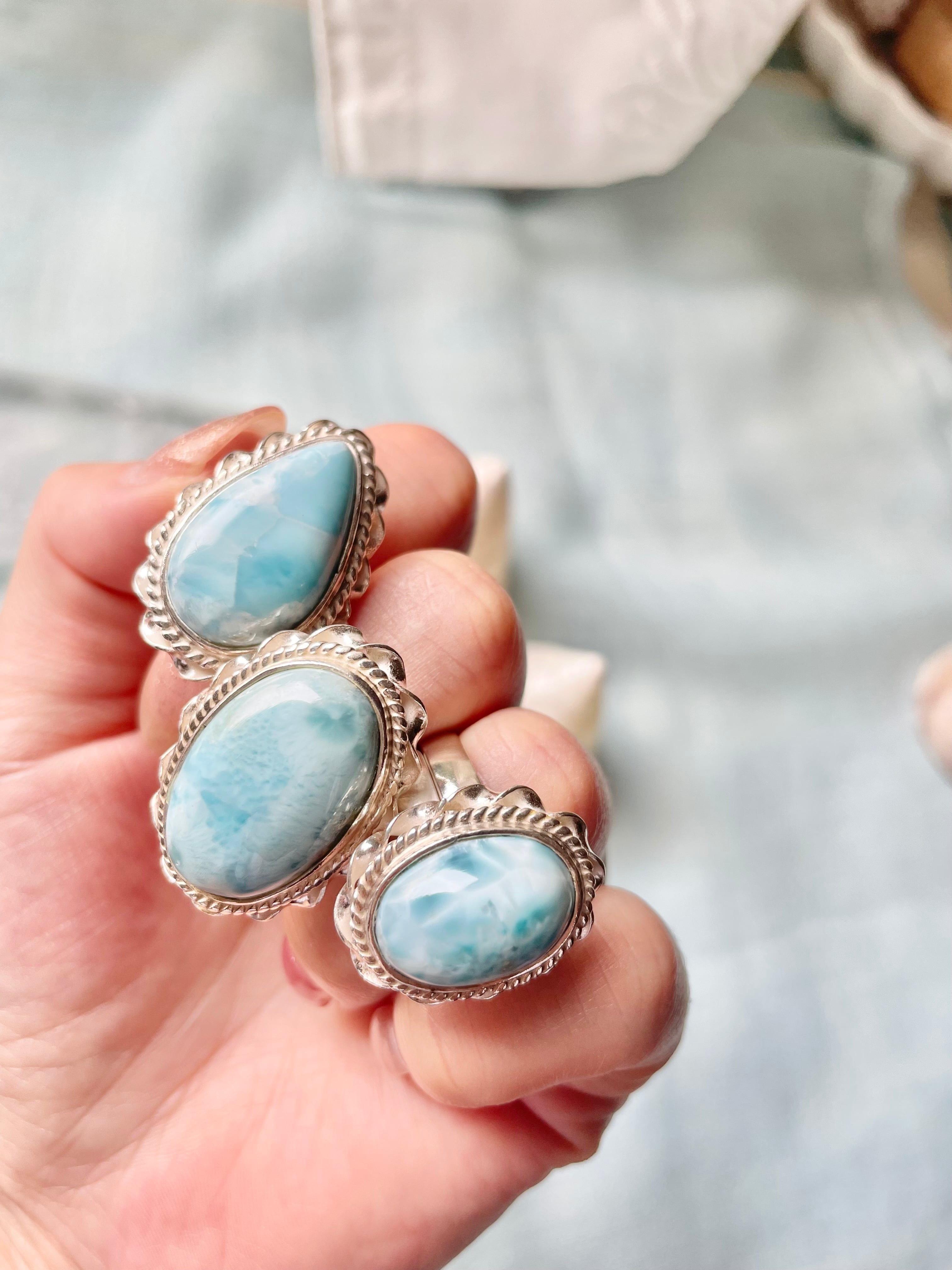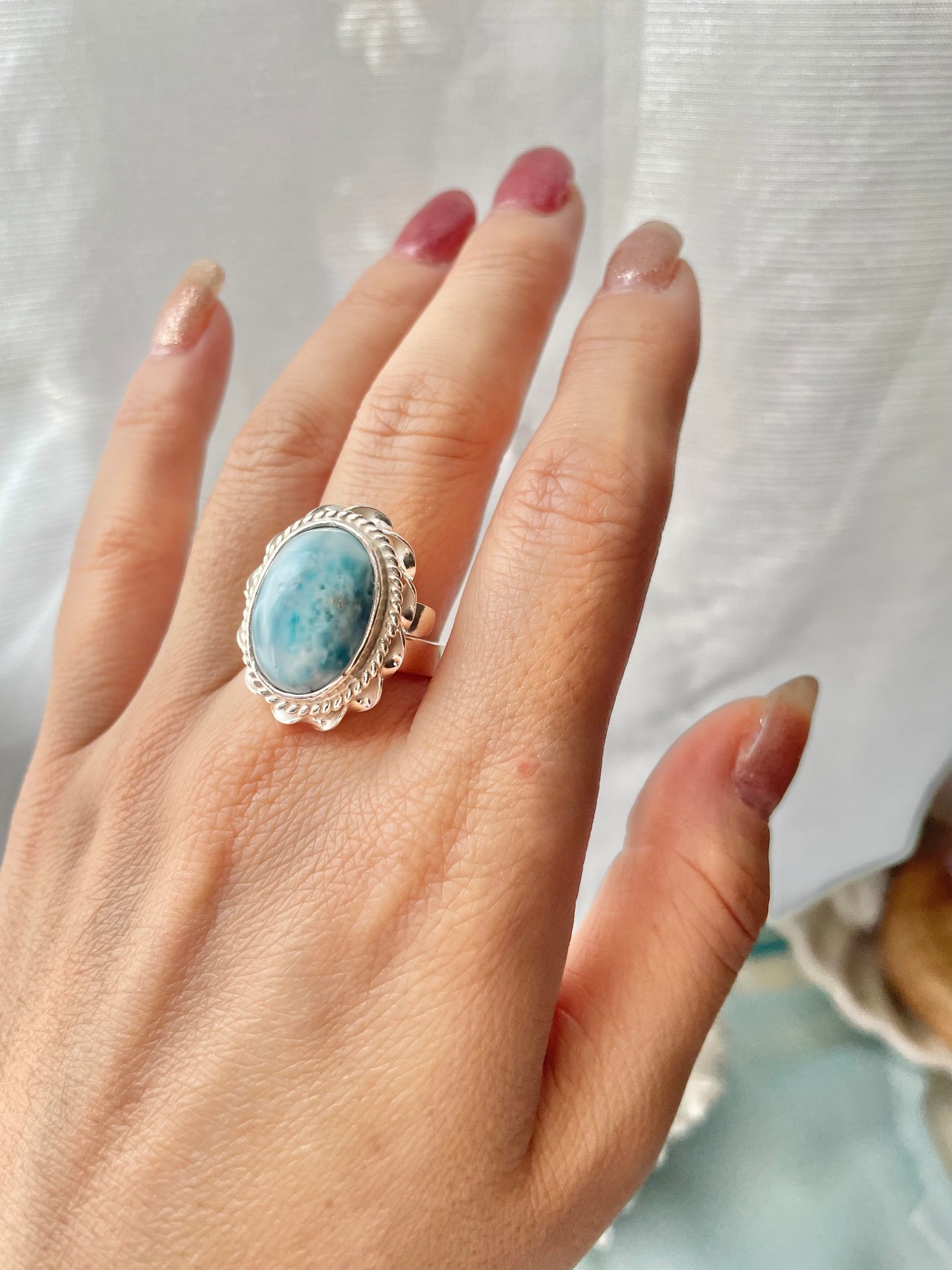 青い海と空を思わせる美しいラリマーを使用した天然石リングです!